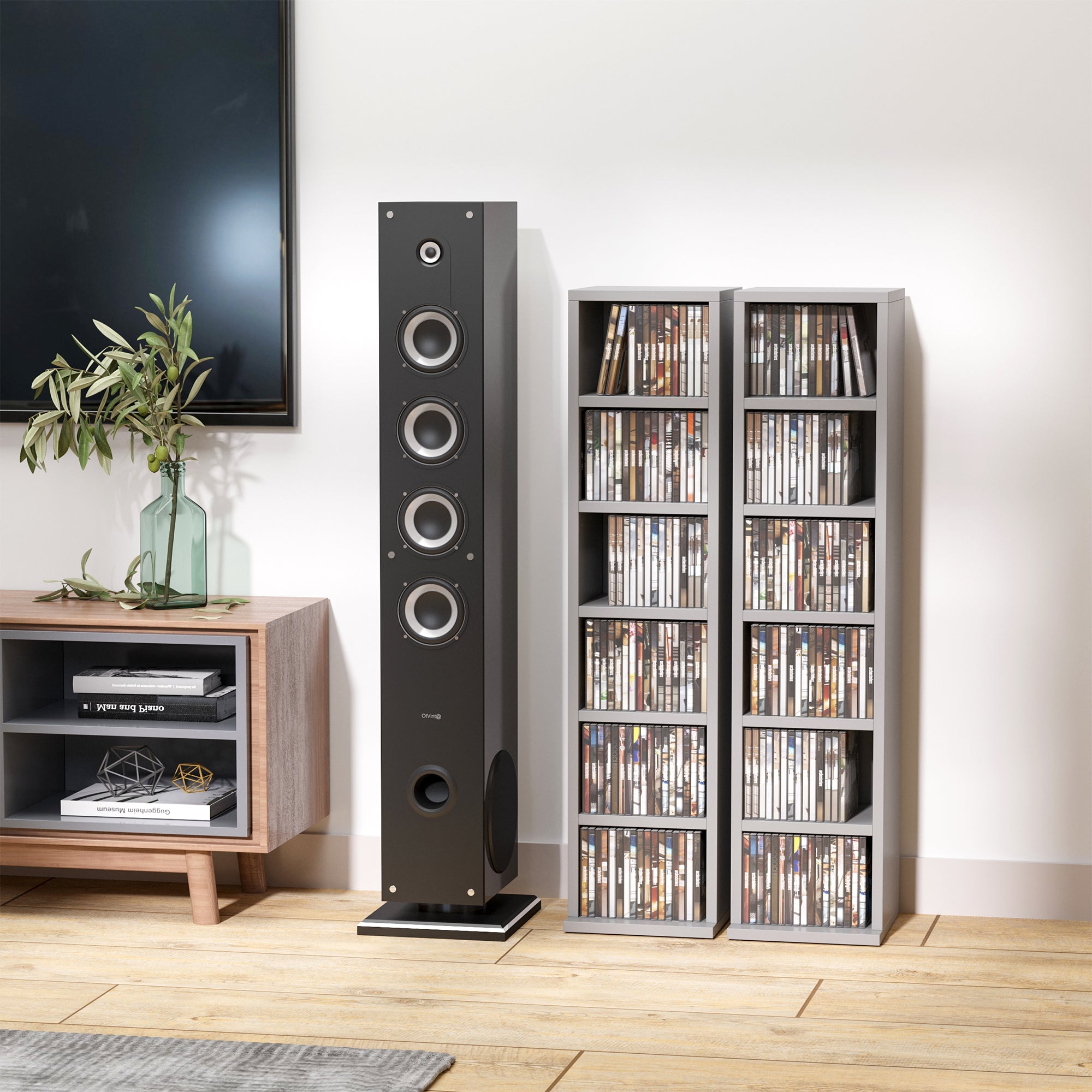 This quality media display unit is great for organizing your CDS, DVDS etc. Partition boards could be installed at adjustable height to meet different storage needs.Key Features Suitable for living...