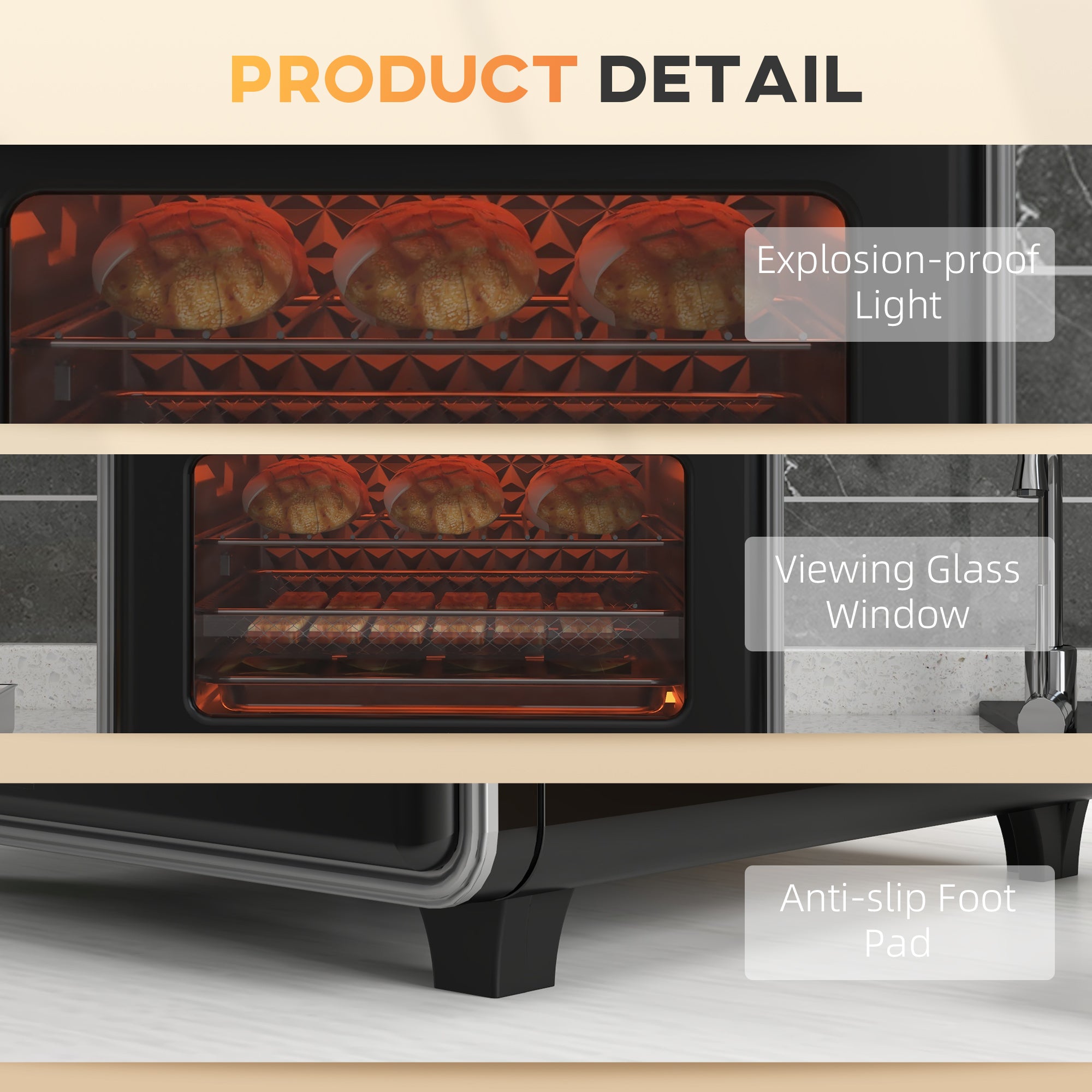 Retro styling for the everyday: this convection oven is a piece to love using and having in your home. The black colour, chrome accents and slight boxy shape gives it an old-school look with a modern twist. Adjust the temperature between 90-230„ƒ easily, with seven different cooking functions: warm, broil, fan broil, toast, bake, fan bake and air fry. This mini oven also comes with three inner layers: a shelf, frying basket and pan, with a size of 20 litres which suits for whole family.