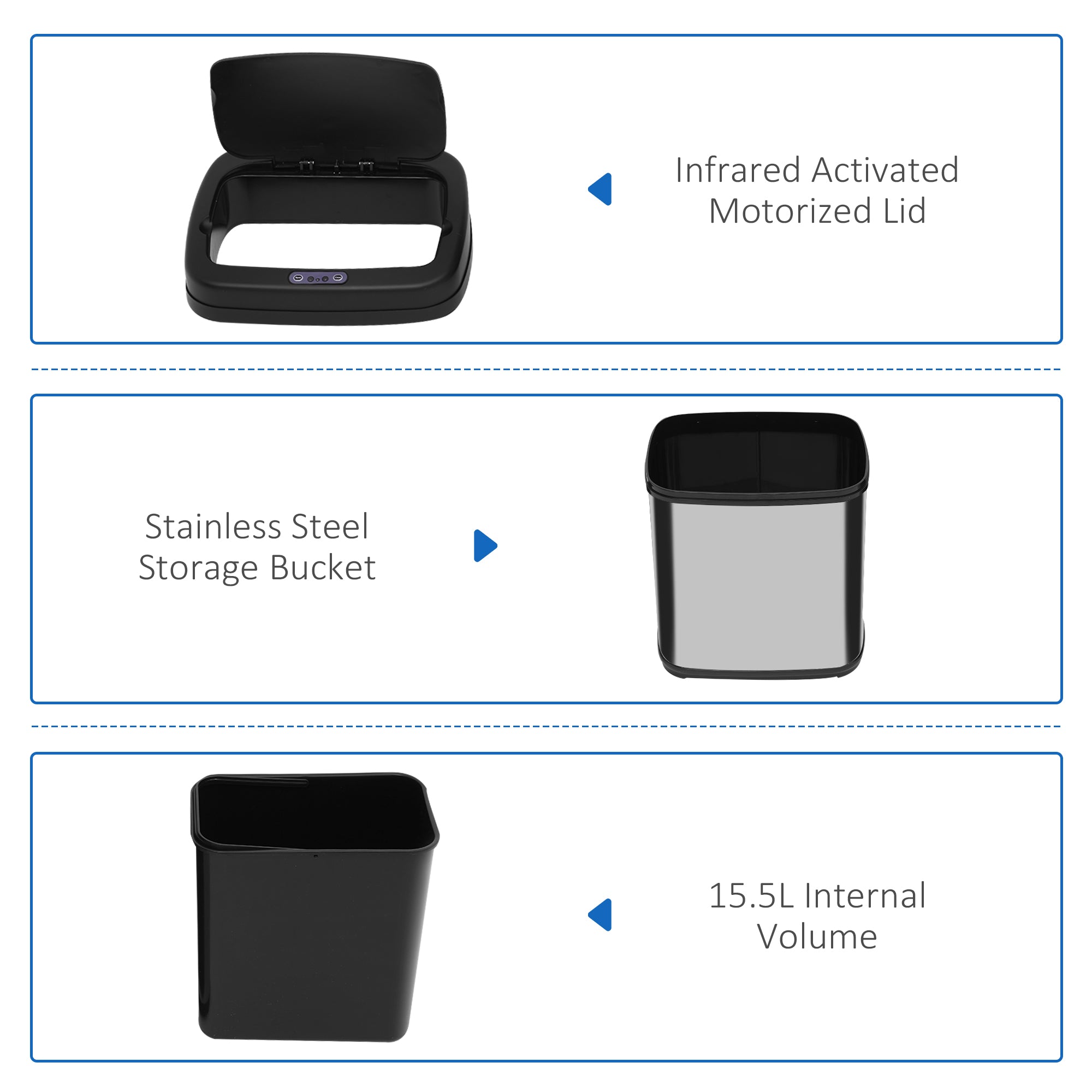 - Use infrared technology, so wave hand in front to open lid automatically