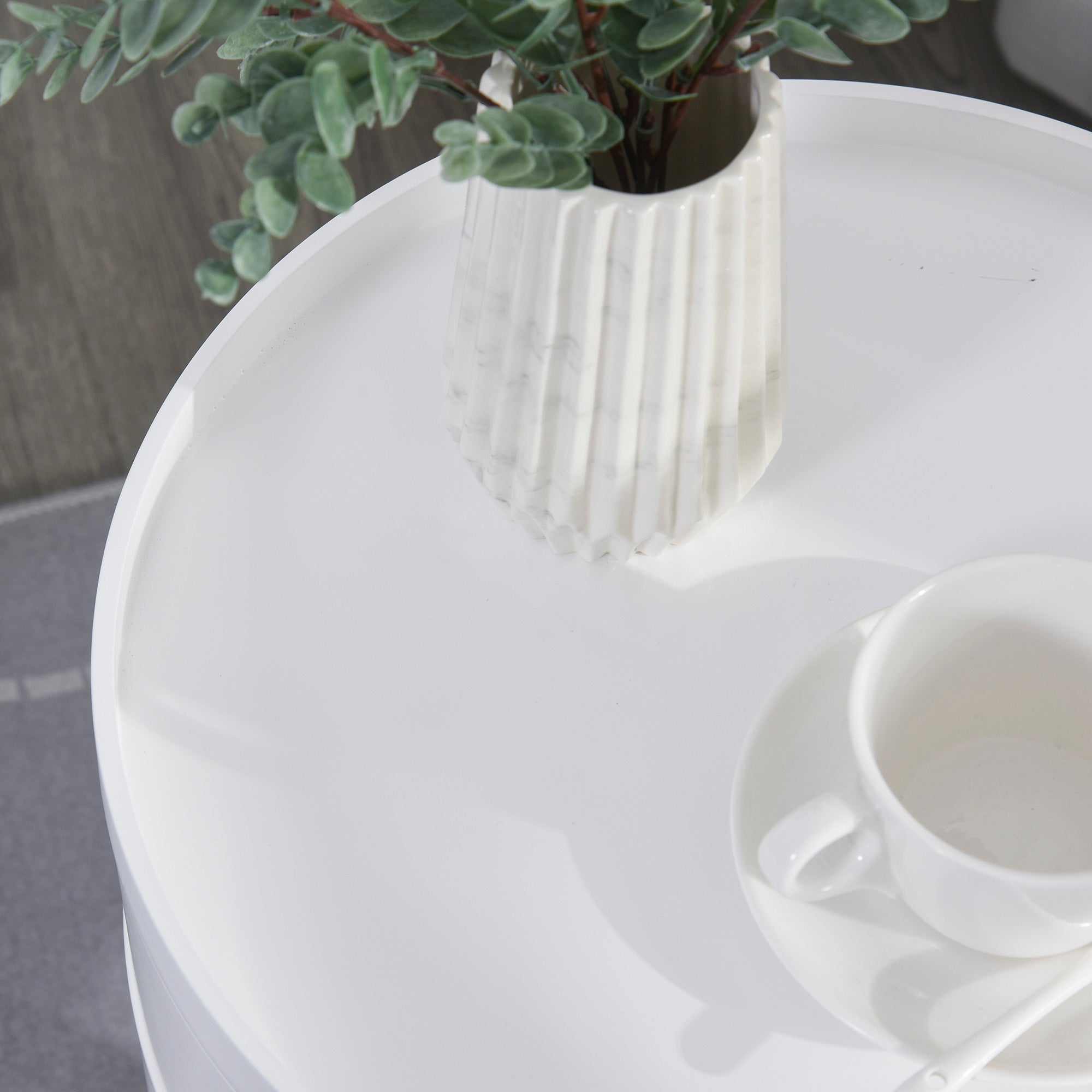 Style and storage 2 in 1-bring this white end table, from, into the living room and bedroom for something which looks fantastic and keeps your home tidy. The table top and middle storage component are removable, so you can chose the combination as you like. The top can be used alone as a raised-edge tray - great for tea times. Simple style in versatile white, works well with a range of interiors.