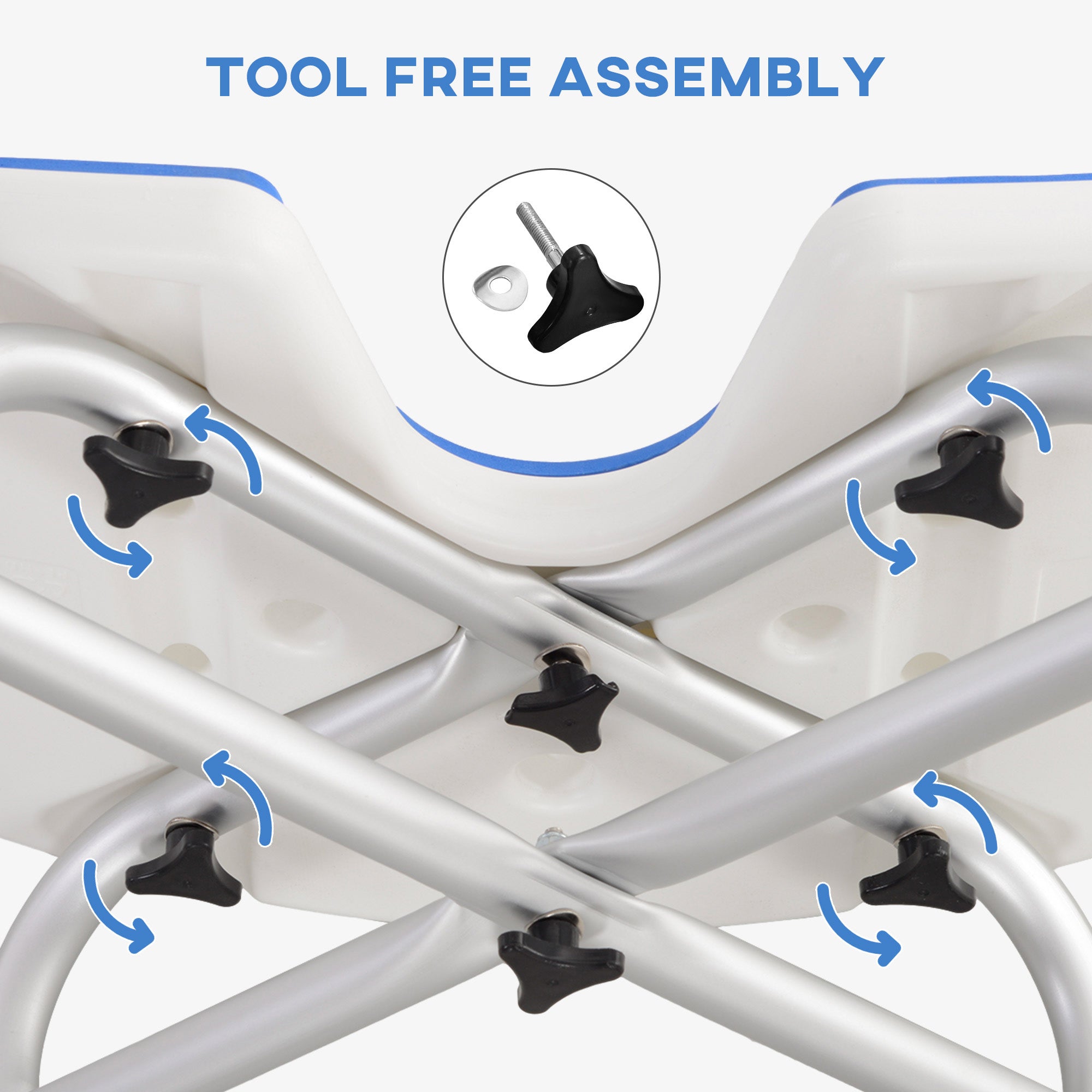 Safe, easy washing for anyone - especially those who need extra help, thanks to this shower stool. The rust-resistant aluminium frame is strong and supports up to 150kg. The height is adjustable from 39cm to 51.5cm, so you can sit at the level you want. The U-shaped seat and built-in handles are convenient. Your new shower essential.