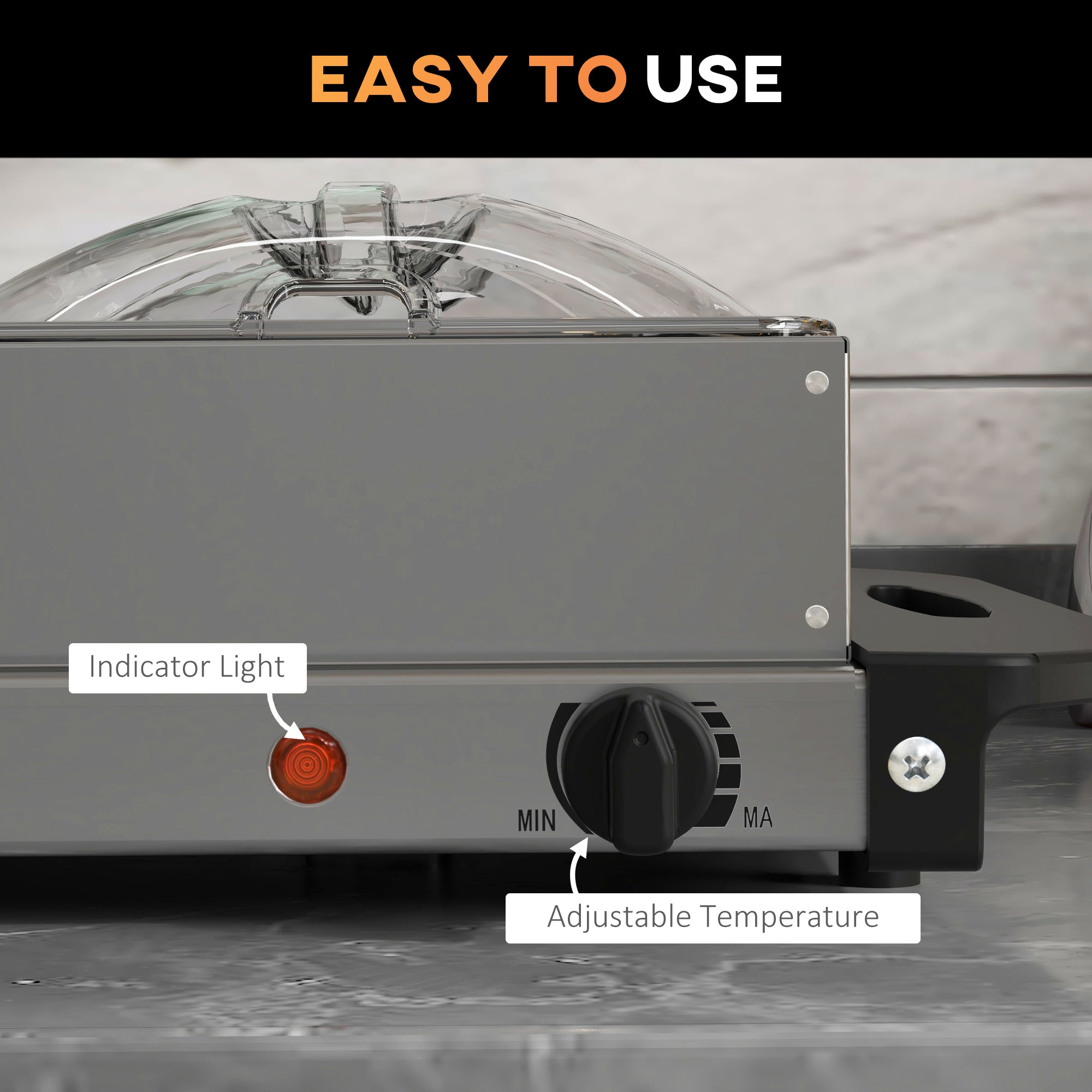 Taking party food to the next level, this electric buffet warming tray gives guests delicious warm food, all event long. Made from stainless steel, this a strong piece which retains the heat superbly. The 58°C-85°C adjustable temperature allows you to set to a heat you want - great for different food. Comes with 2x 1L trays and 2x 2.4L trays: four areas for different foods, all with a clear lid to keep food covered and the heat retained. Finished with cool-touch handles.