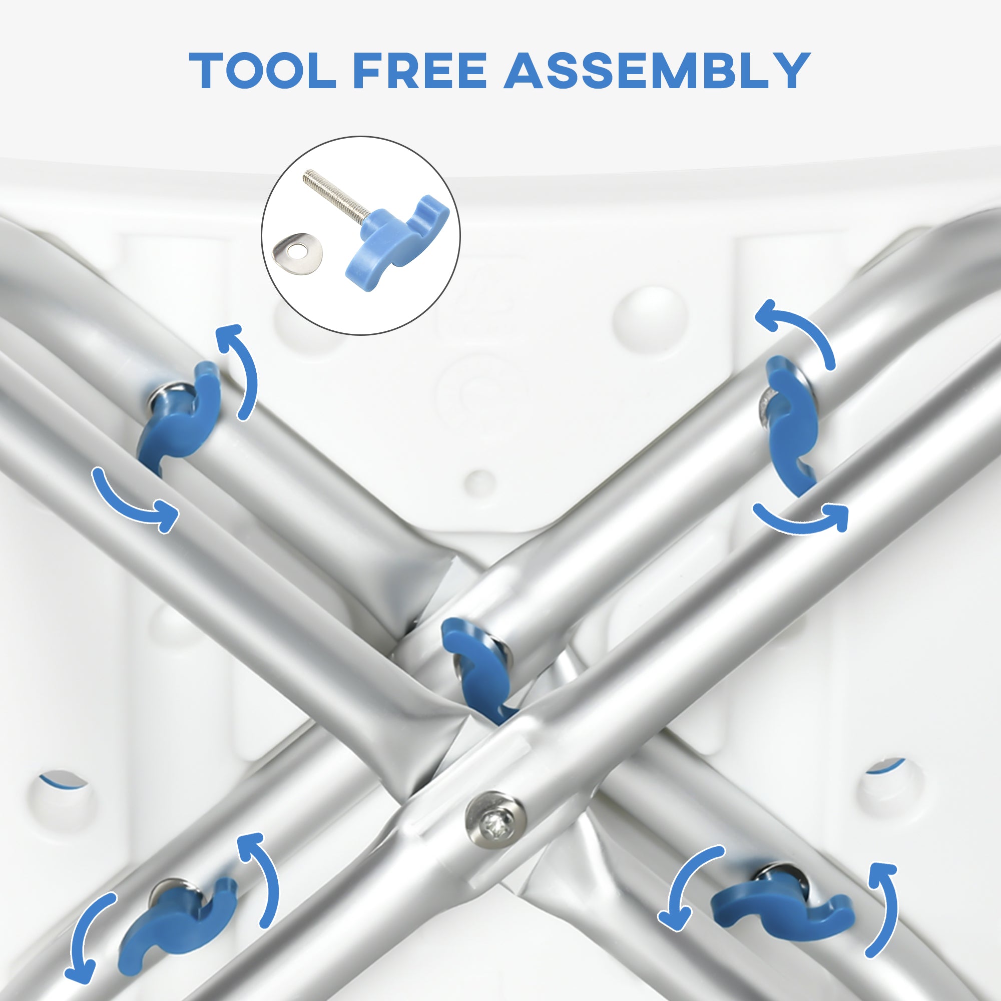 Made for assistance in the shower or bath, our shower chair for the elderly from is suitable for the elderly, injured or those who require extra assistance whilst showering or bathing. Adjustable to four different heights, the shower chair for the disabled help you find the most comfortable and safe position to sit. Its curved seat design with padding makes the shower seat for elderly comfortable to use. It's finished with four large suction foot pads for safety and stability.