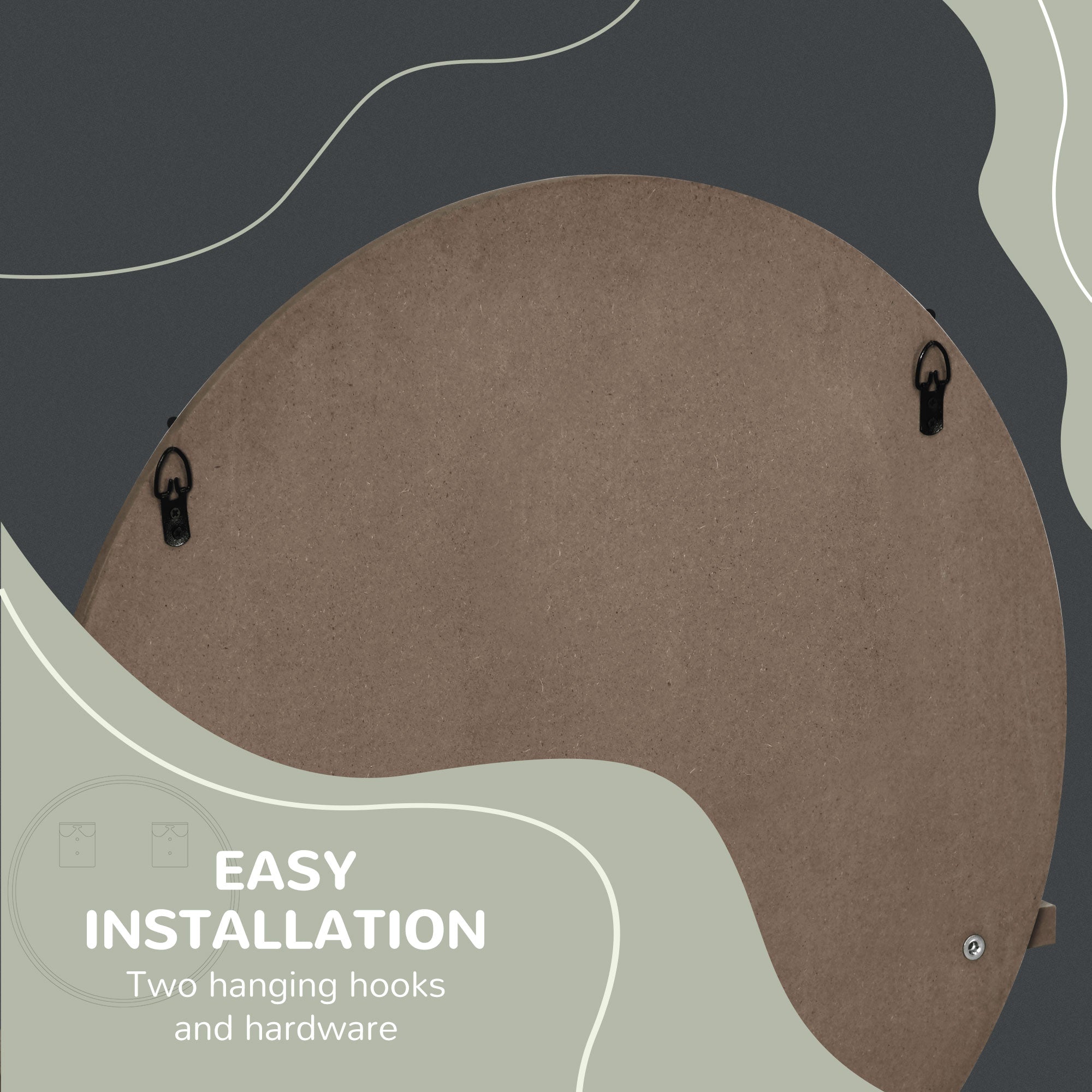 From the lavatory through to the hallway, bedroom and office: this bathroom mirror is a versatile essential - and your living space is certainly missing! The smooth rounded shape comes with a beautiful wood-effect frame - a classic finish which matches easily with plenty of different furniture. The bottom shelf offers handy holding space for when you're getting ready: think cosmetics. Complete with two back hooks to attach to a safe surface.
