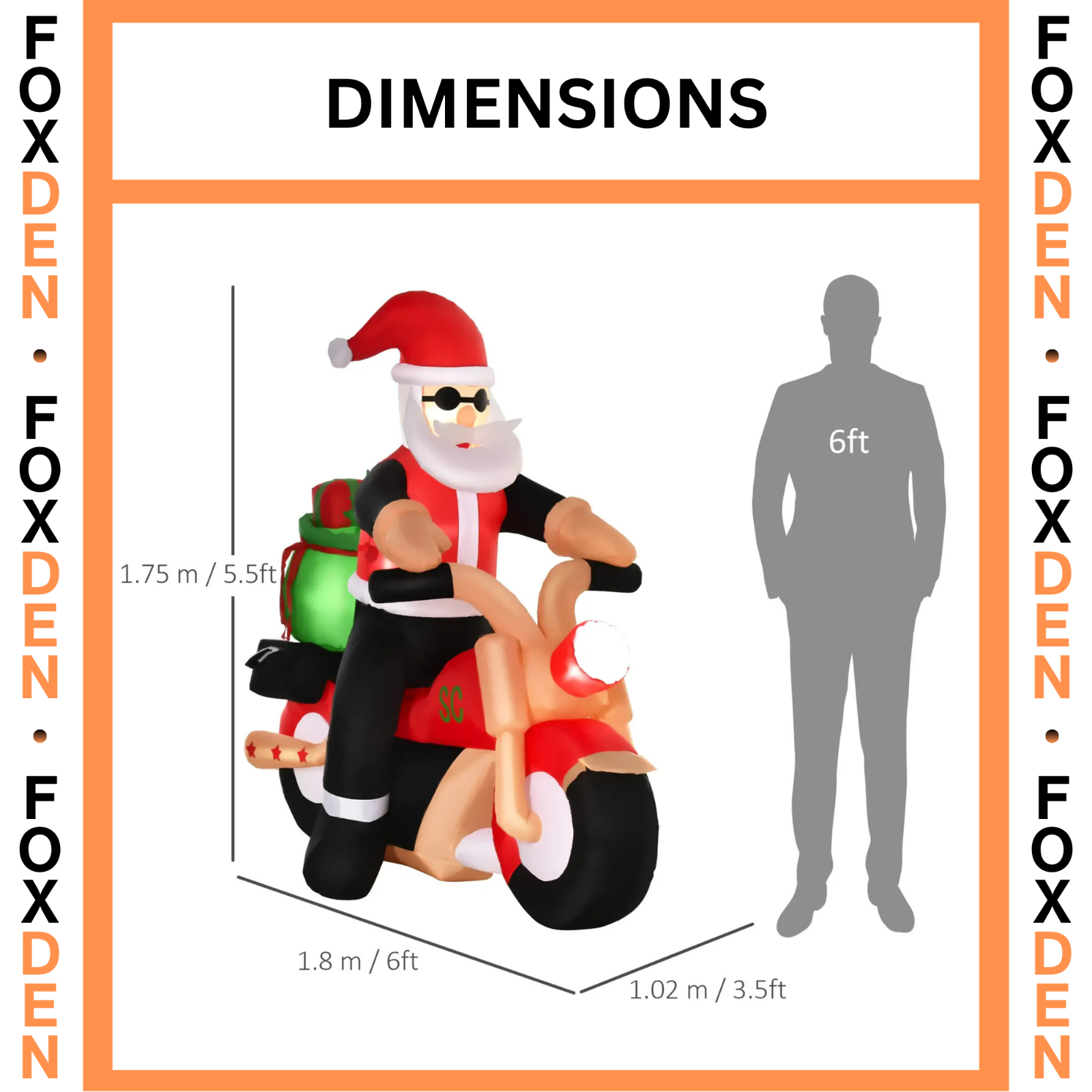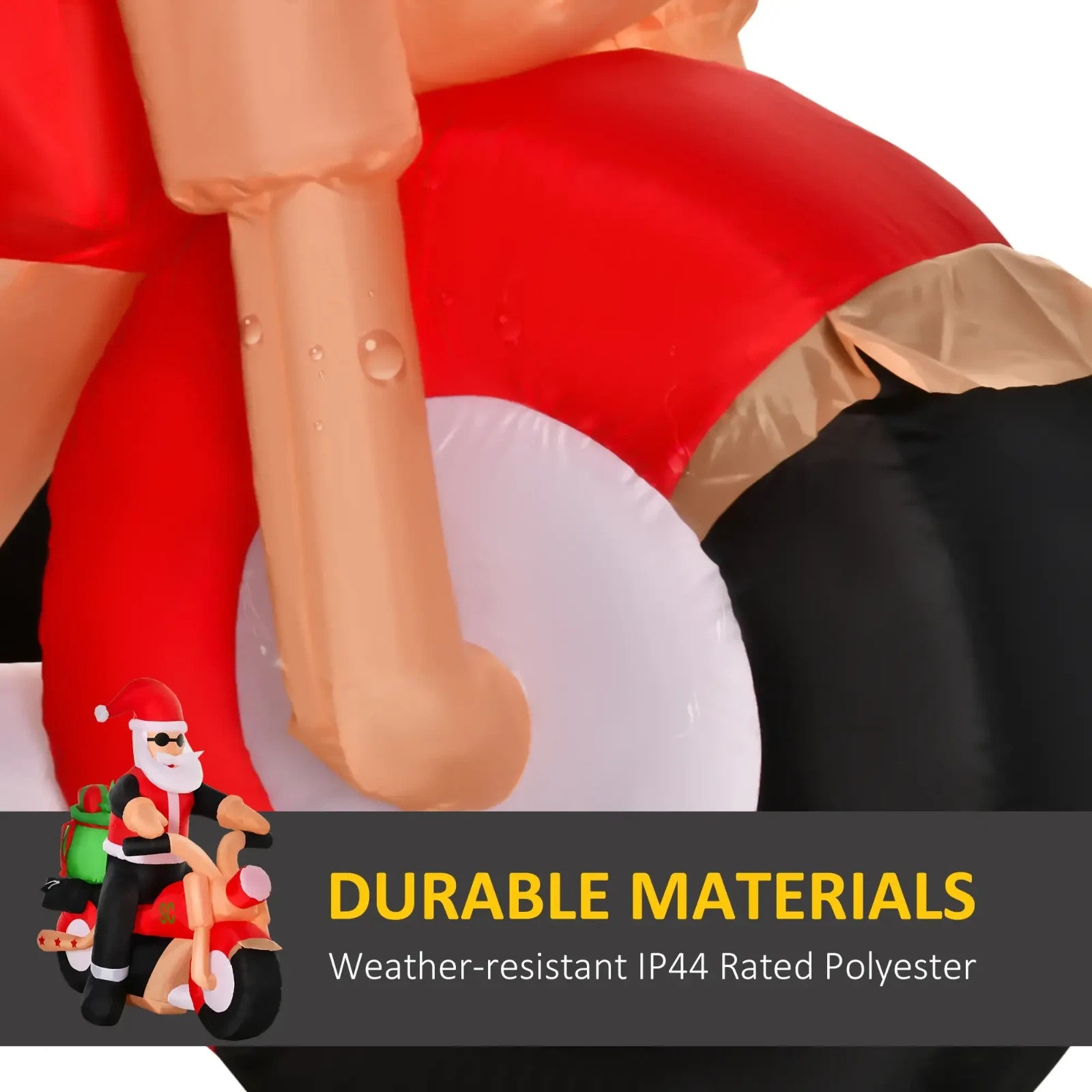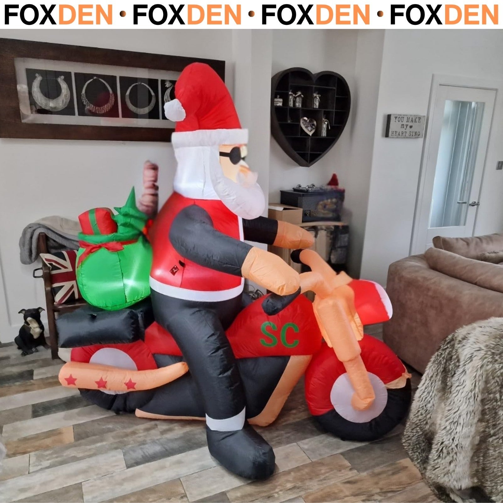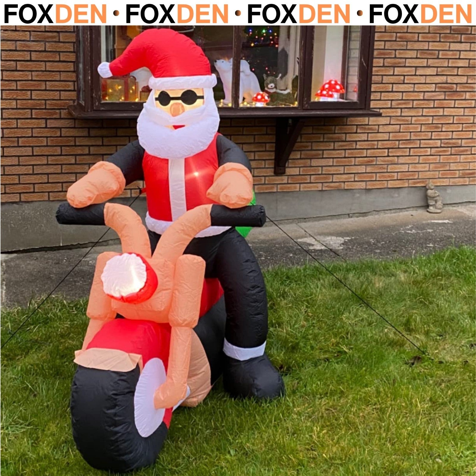 Make Christmas cool this year, with an inflatable sunglass-wearing Santa Clause on a motorbike .Made of water-resistant polyester fabric, you can set up and turn your garden into an Xmas spectacle. Light up your evenings with LED lights, creating a twinkling display to admire. Don't waste time setting up, as soon as it's plugged in, it will start inflating and will be ready for your garden. The six ground stakes, two drawstring and internal fan will keep this Santa stable when up.
