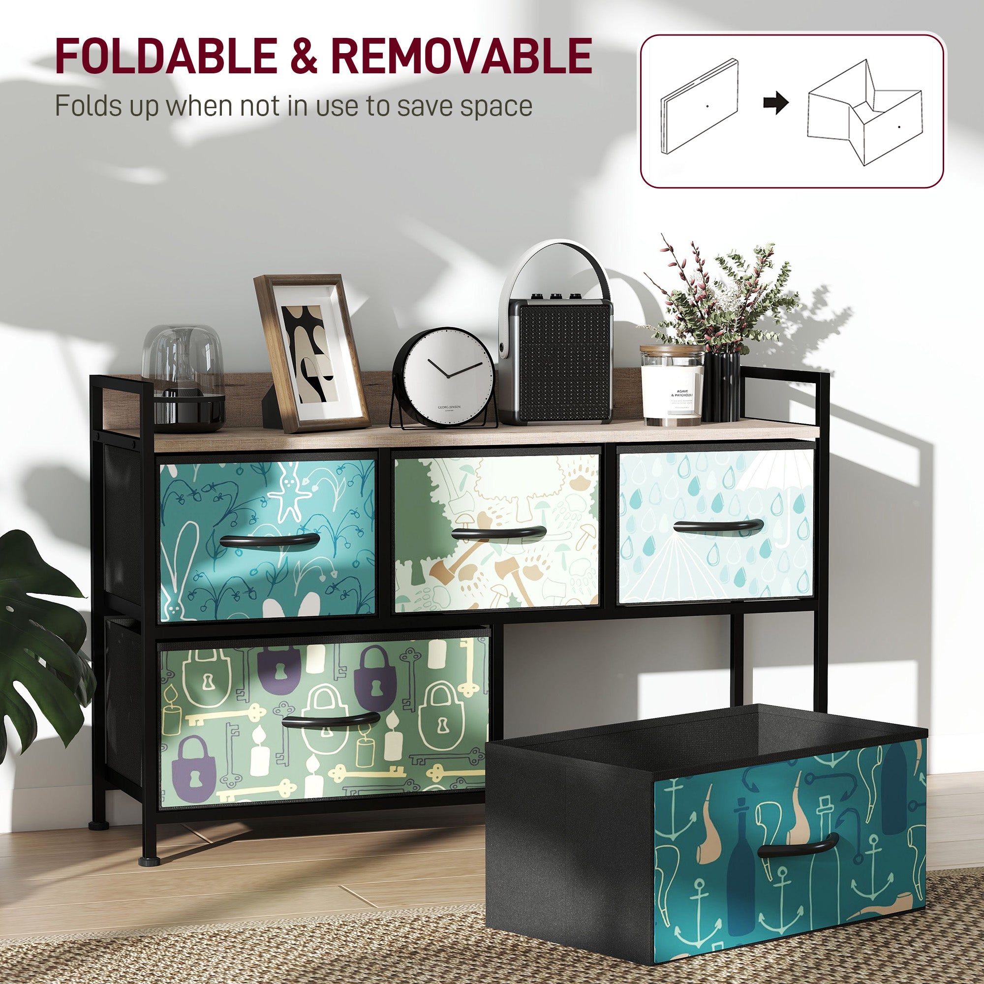 Transform your space with the chest of drawers, where style meets functionality! Adorned with exquisite patterns on each drawer panel, this bedroom drawers add a touch of elegance to any room. With five fabric drawers that are both removable and foldable, organising has never been easier. Great for bedrooms, living rooms, or home offices to keep your essentials tidy.