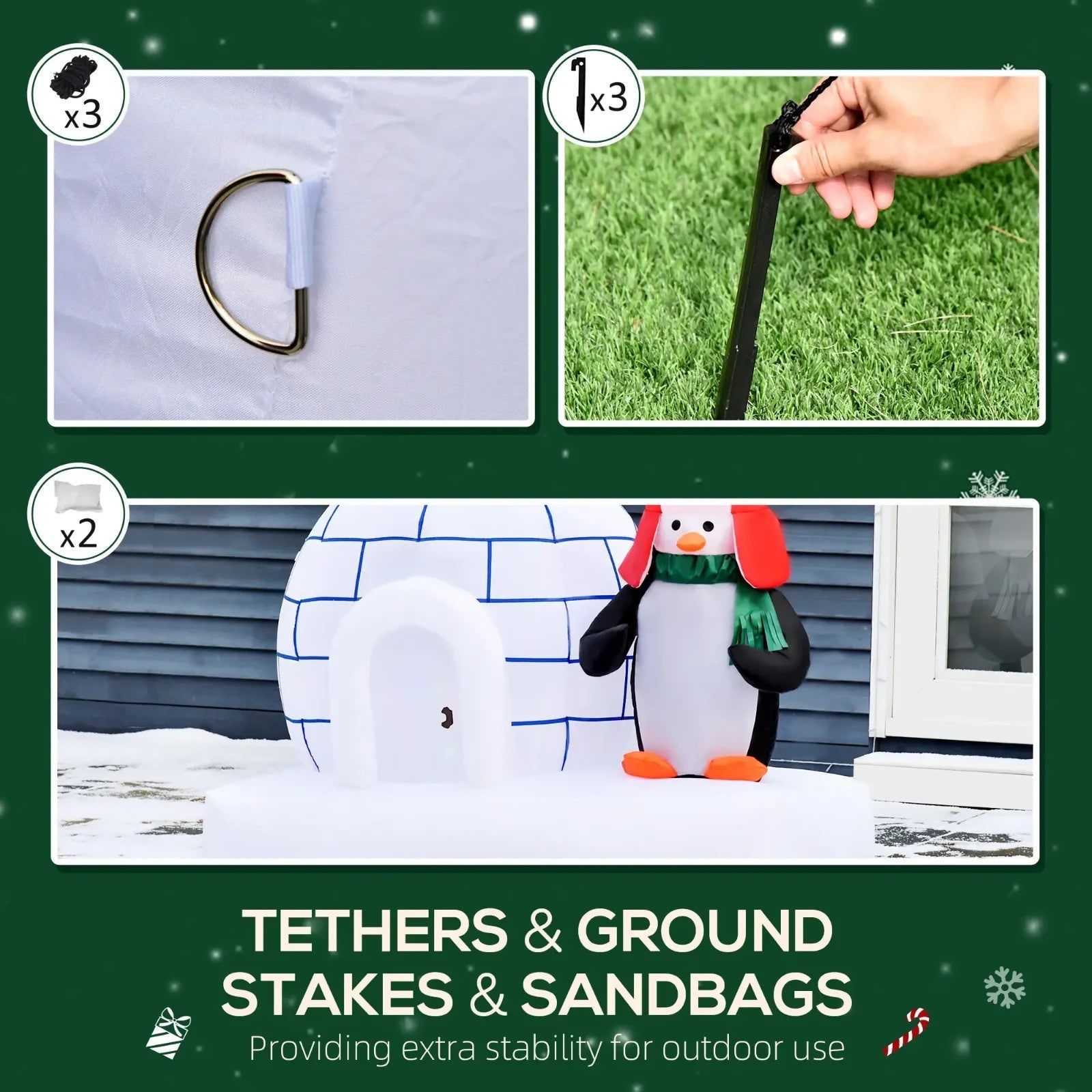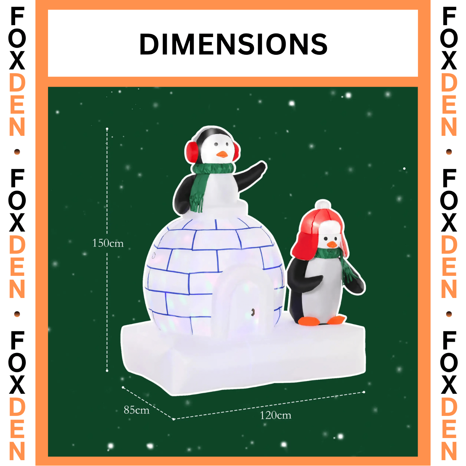 Add some magic to your Christmas decorations this season. Bring this inflatable decoration into the home. Made from thick polyester, the shell is durable for repeated use. It's also IP44 rated so secure against light/mild water splashes - can be used outdoors. A cute design of two penguins around an igloo, inner LED lights create a cute and soft glow. Comes with accessories to keep it stabilised to the ground.
