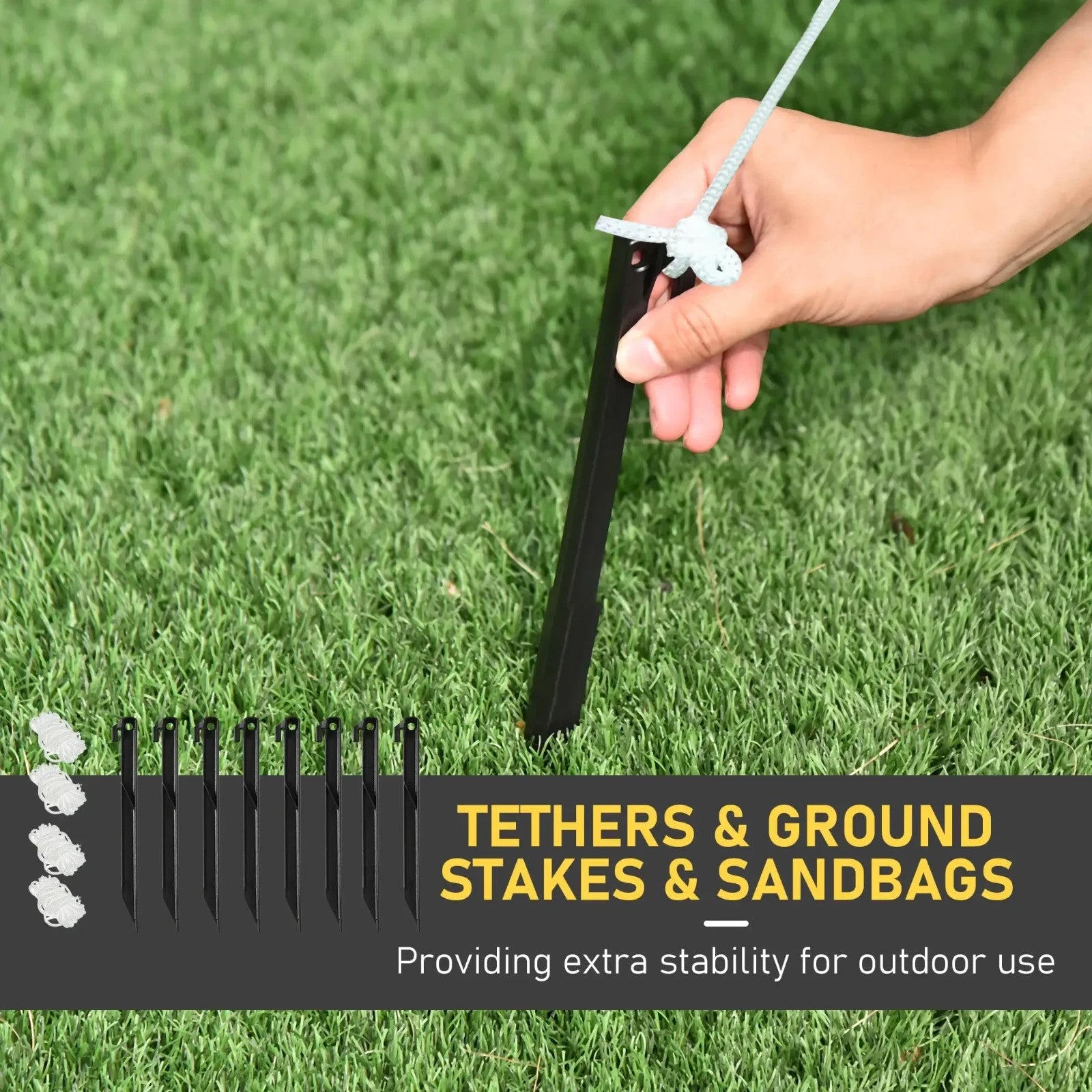 COMPLETE KIT INCLUDED: Comes with eight ground stakes, four guy ropes, and two sandbags for stable installation.