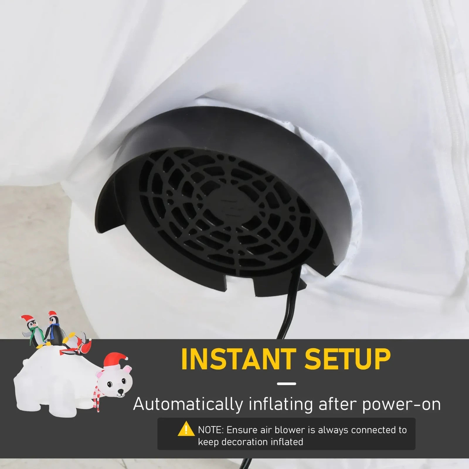 EASY SET-UP: Automatically inflates when plugged into power and deflates quickly for compact storage after the festive season.