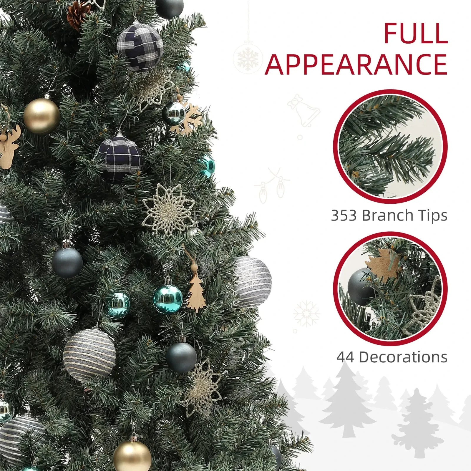 Go the extra mile this festive season with this pre-lit christmas tree. Made from flame-retardant plastic, this fake christmas tree is safe for use in your home. The warm white LED lights flick between eight modes, so you can choose the vibe of the illumination to suit you. Equipped with a 'MERRY CHRISTMAS' ribbon, top star, pine cones and decorative balls, this LED Christmas tree adds a sparkle to your celebrations. Complete with a steel base to stand steady.