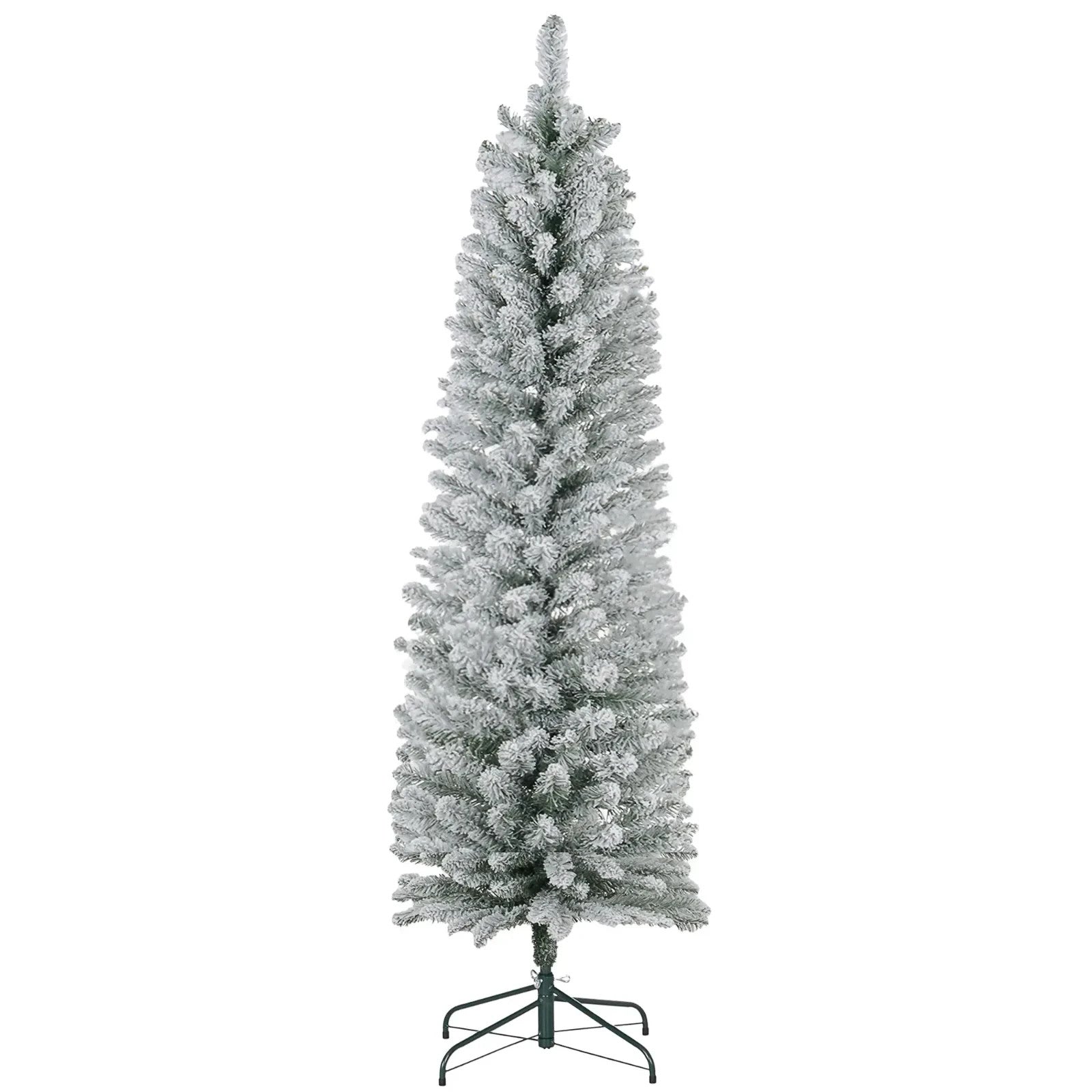 5ft Pencil Christmas Tree White Snow Flocked Tips Realistic Xmas Tree Metal Base
