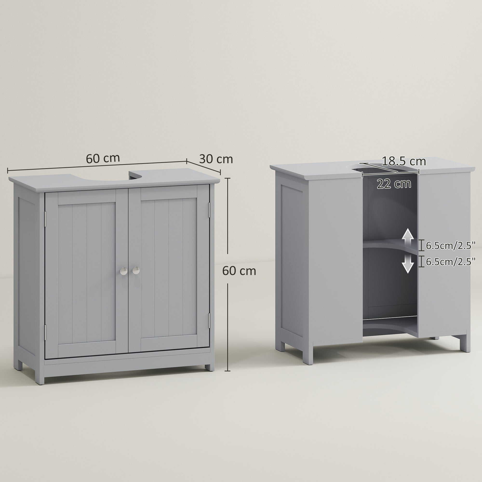 Opt for a traditional aesthetic when choosing under-sink storage with this cabinet from. Its clean colourway pairs effortlessly with the carved indents and sleek handles. Made from MDF to be solid for daily use, with a smooth paint coating all over for light protection. Inside features an adjustable shelf for organizing and separating toiletries when needed. The 'U' shaped cut out slots into the sink pipe with ease to bring space into your home which you never thought possible before.