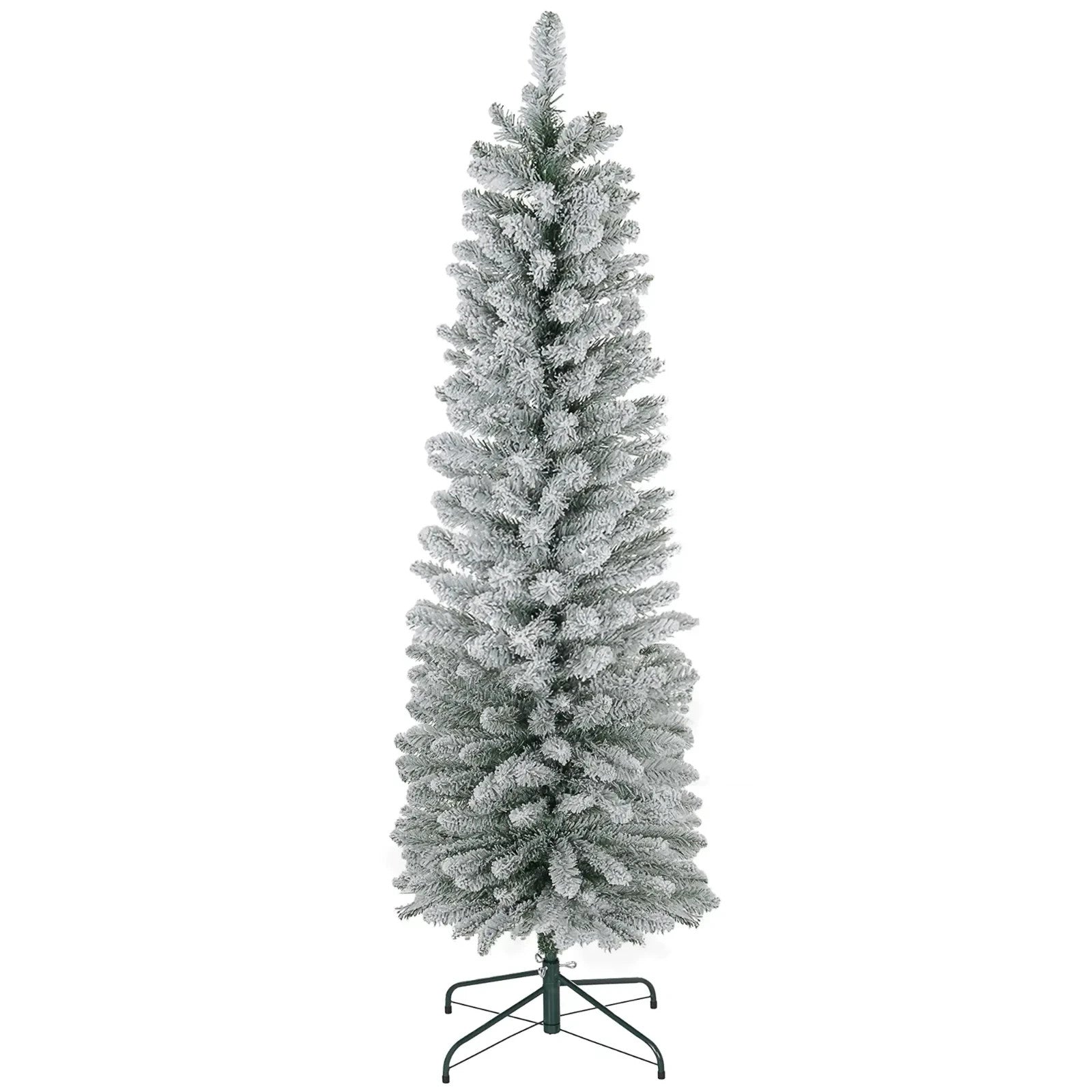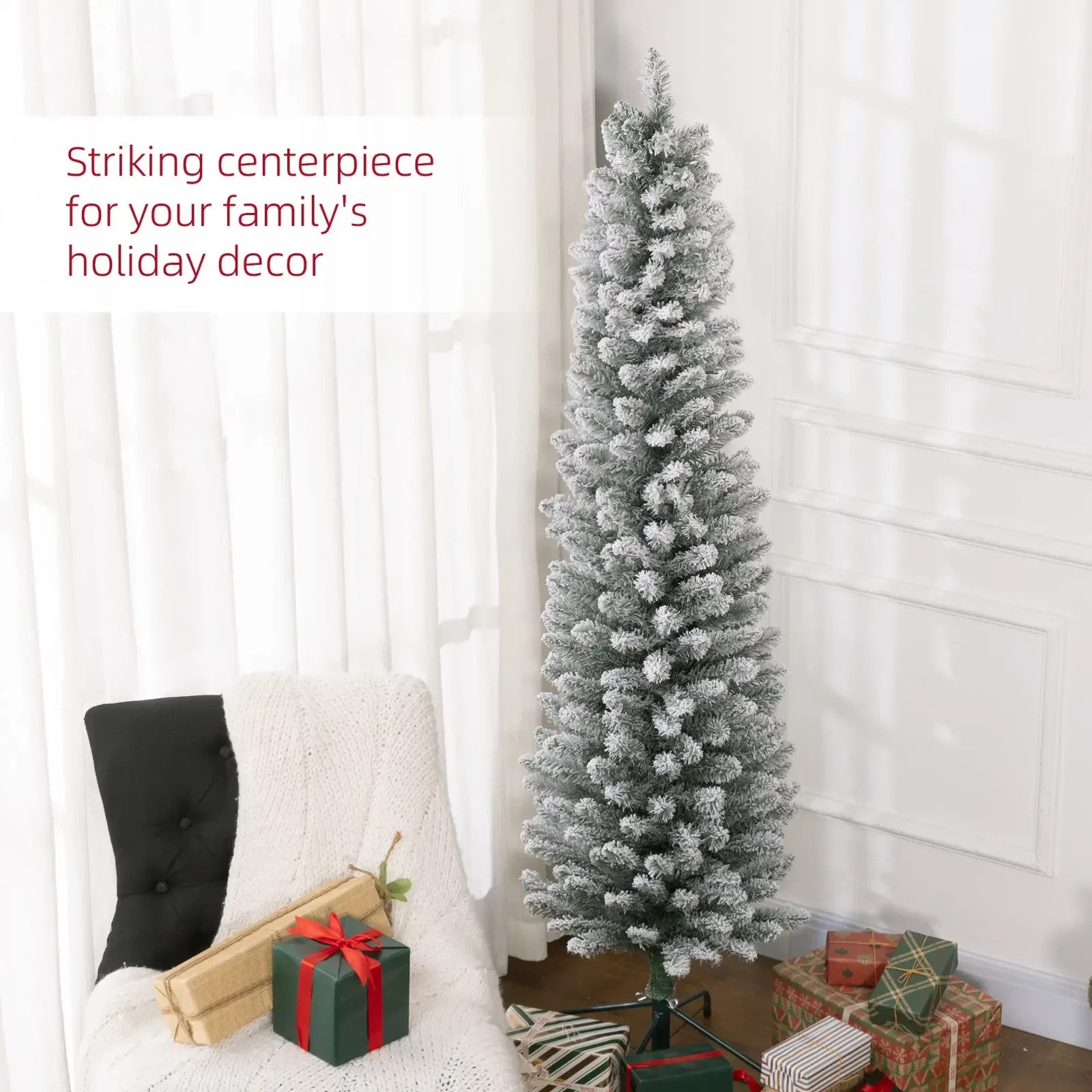 6ft Pencil Christmas Tree White Snow Flocked Tips Realistic Xmas Tree Metal Base