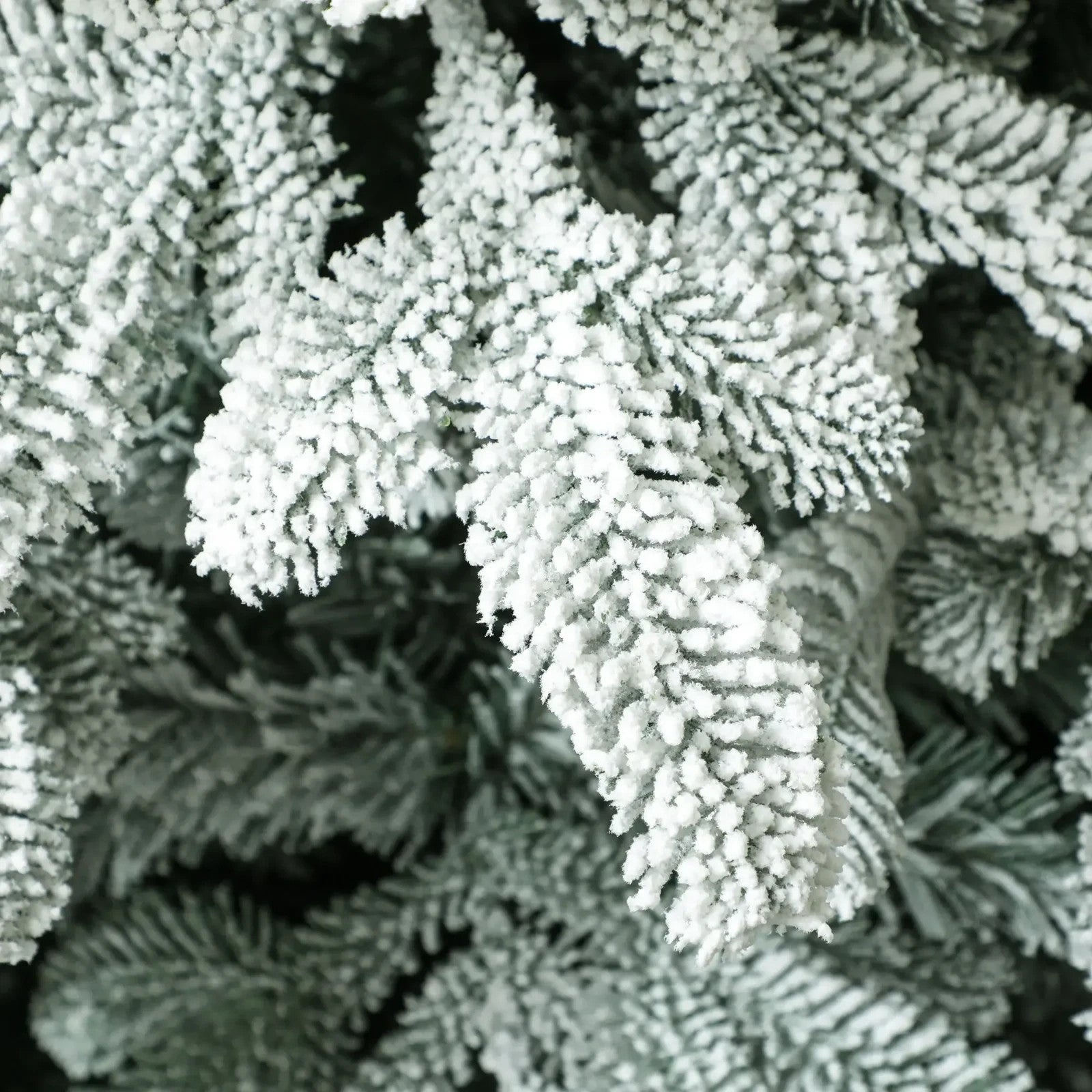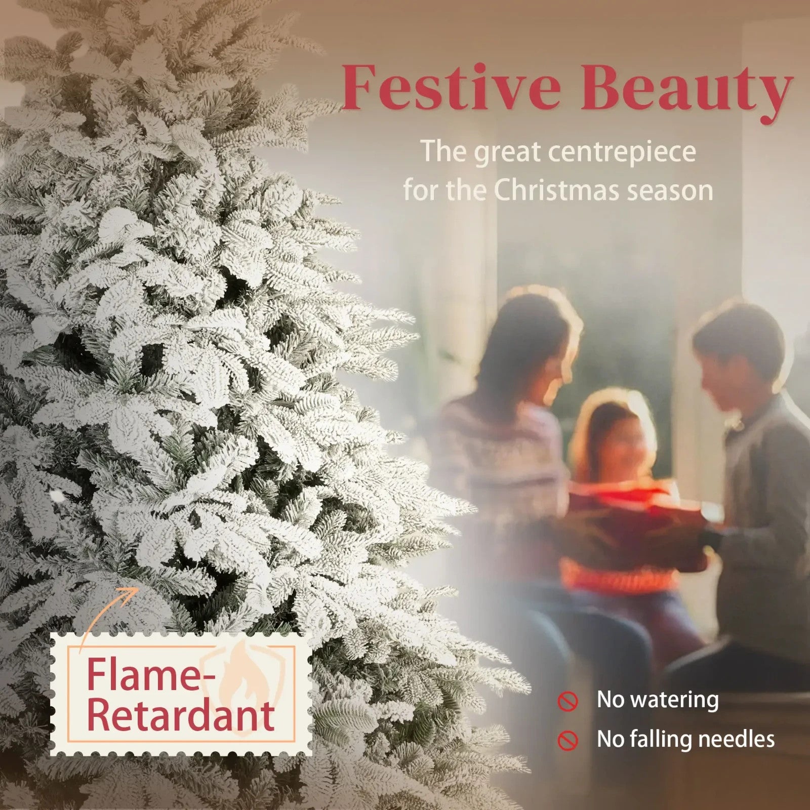 Step into a winter wonderland with the Christmas Tree, featuring 1867 snow-kissed branches for a truly magical festive feel. Most branches are carefully molded to replicate the natural, enchanting look of a real tree. Standing 210 cm tall, it transforms any room into a cosy festive retreat, safely crafted from flame-retardant materials and supported by a robust metal base.