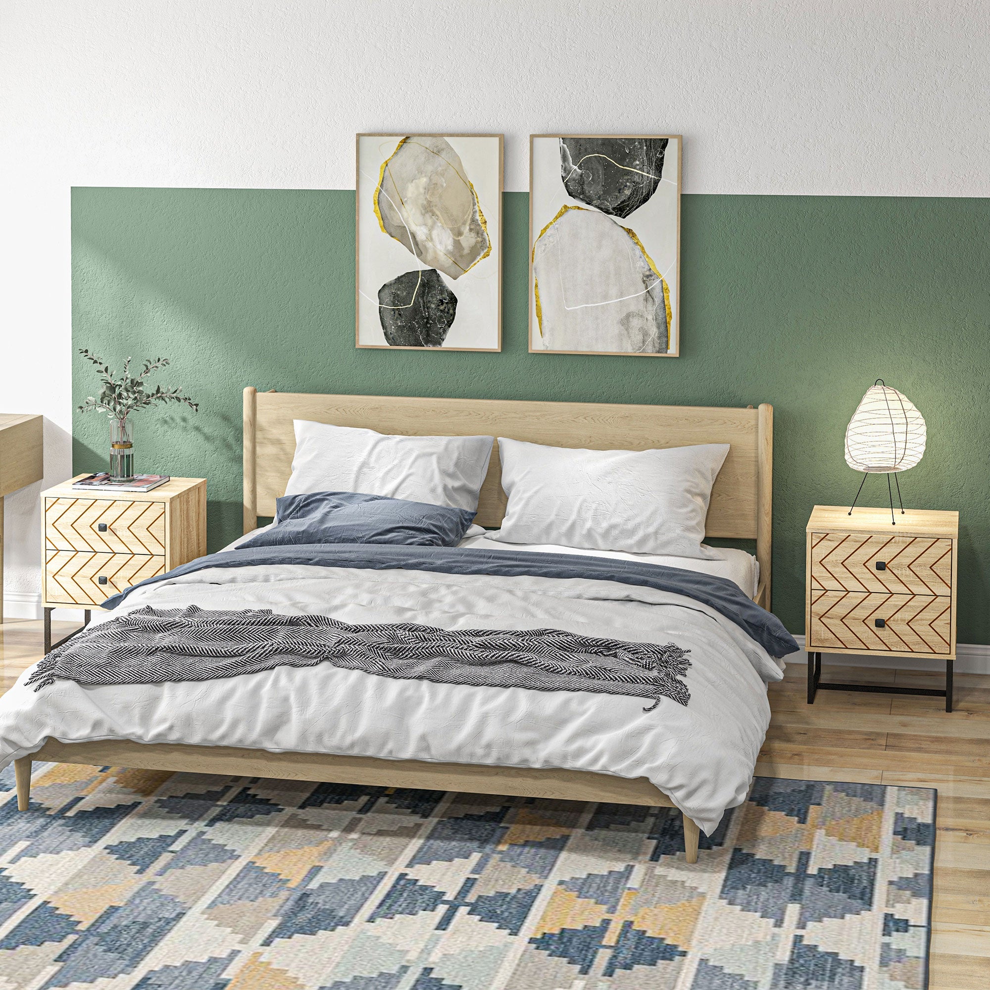 Bring character into your bedroom with this two-draw bedside table from. Built from a blend of MDF and particleboard for long term use, it is covered in a zig-zag design, making it a quirky and unique addition to your furniture you€™ll love for years to come. A metal frame sits on the bottom, keeping the unit stable and helping to prevent damage, with anti-slip pads so it doesn€™t move easily. It is finished with black handles on the draws, ensuring they are easy to open and close, as well as adding a sophisticated touch to the unit.
