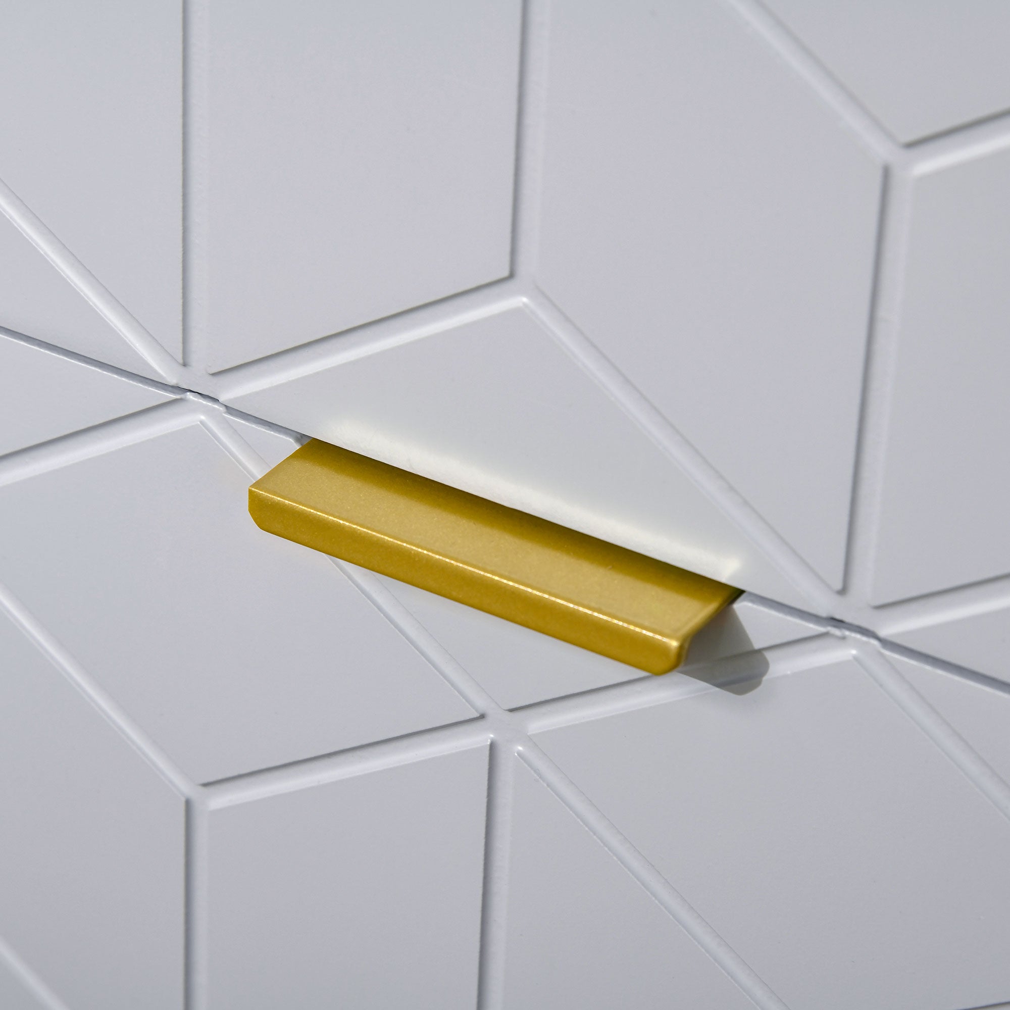 Every home needs furniture which has its own charm. For yours, look to this bedside table. It comes in an art deco inspired design, where the white frame is fitted with blue embossed drawers and gold tone finishes on the base and drawer handles. It features two drawers to offer plenty of room for your night time essentials. Complete with a metal base for plenty of support.