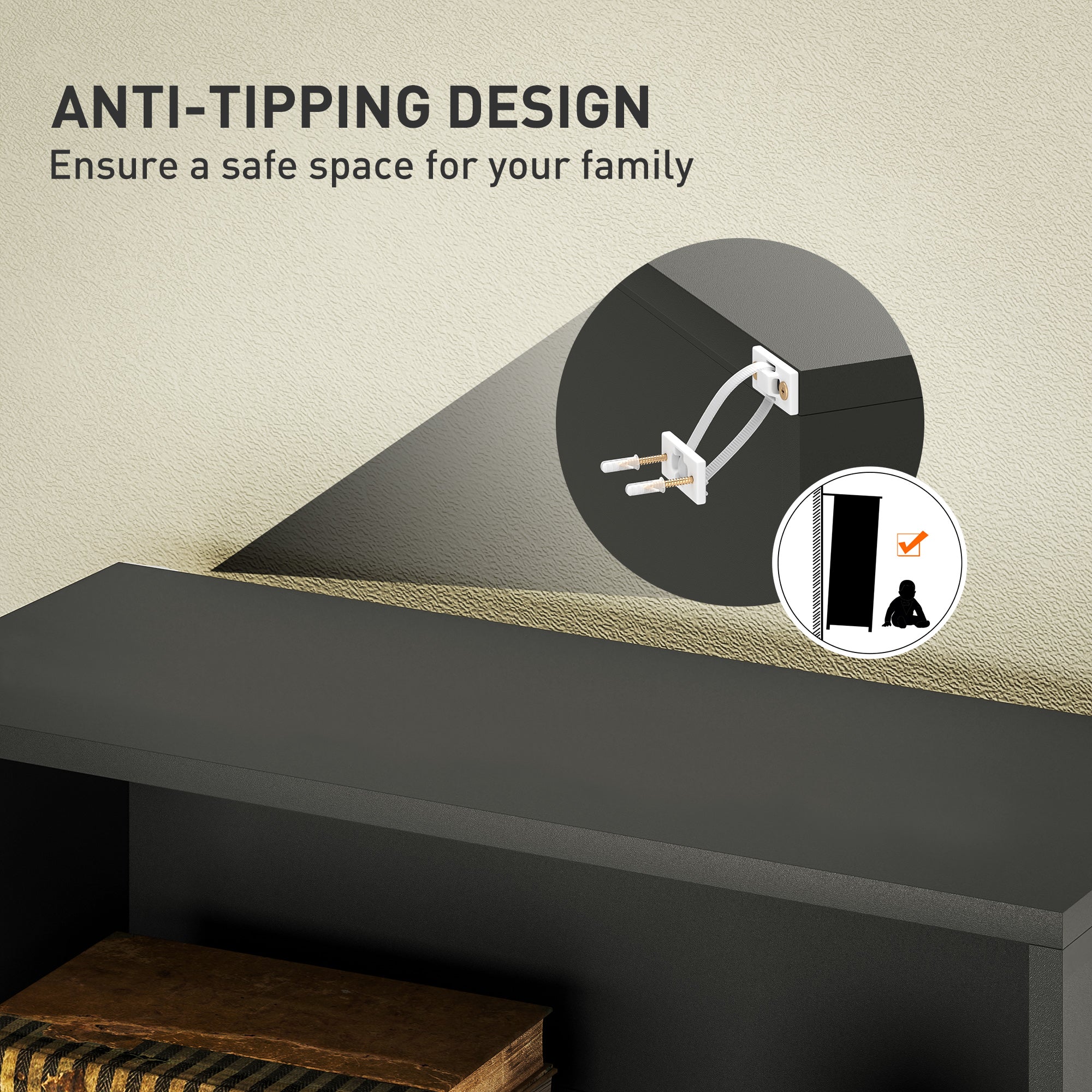 - Six open compartments organise books and decor items, with four adjustable shelves for flexibility