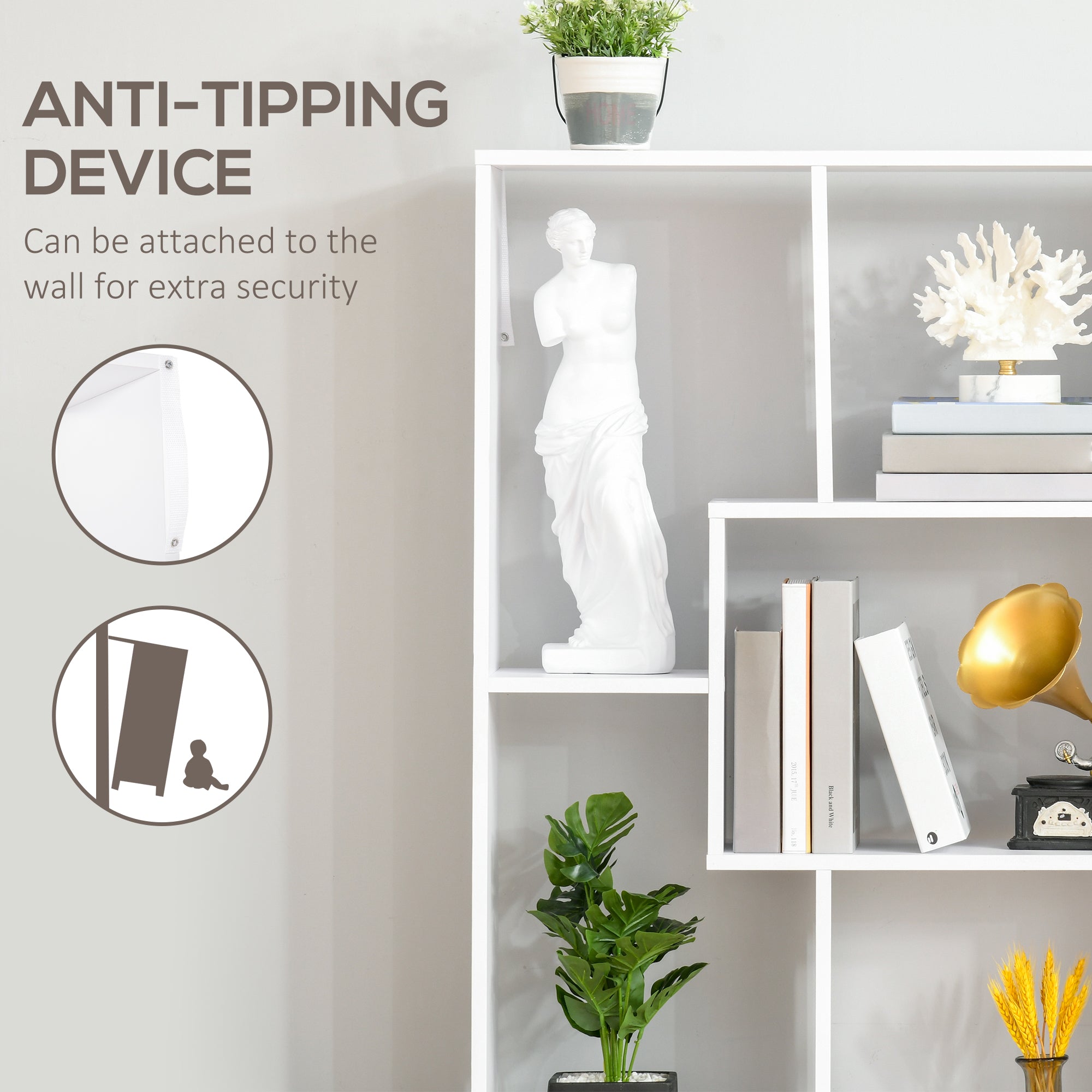 - Anti-tipping design, bookcase back features attachments to secure to the wall - perfect for homes with children and pets