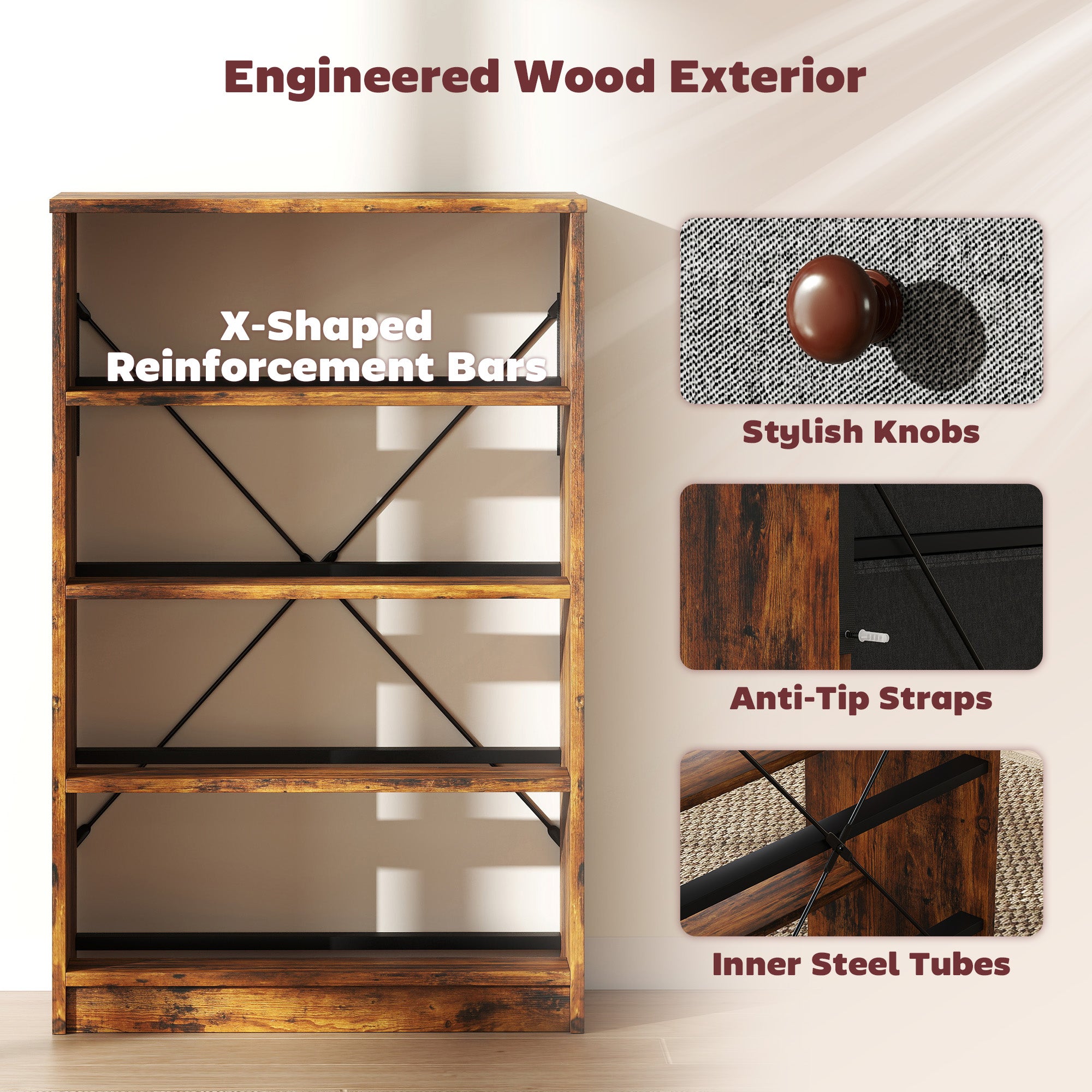 - Four fabric drawers neatly sort clothes, socks and accessories