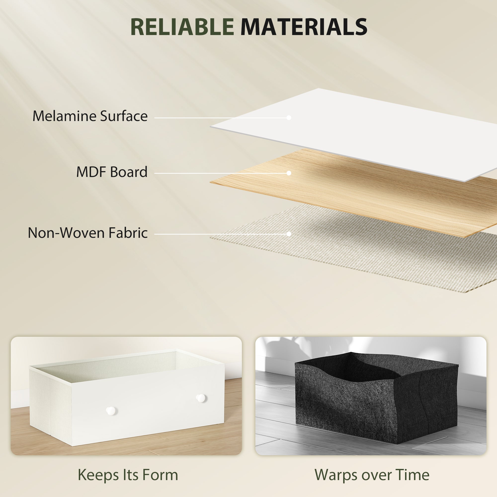 - Six fabric drawers neatly sort clothes, socks and accessories