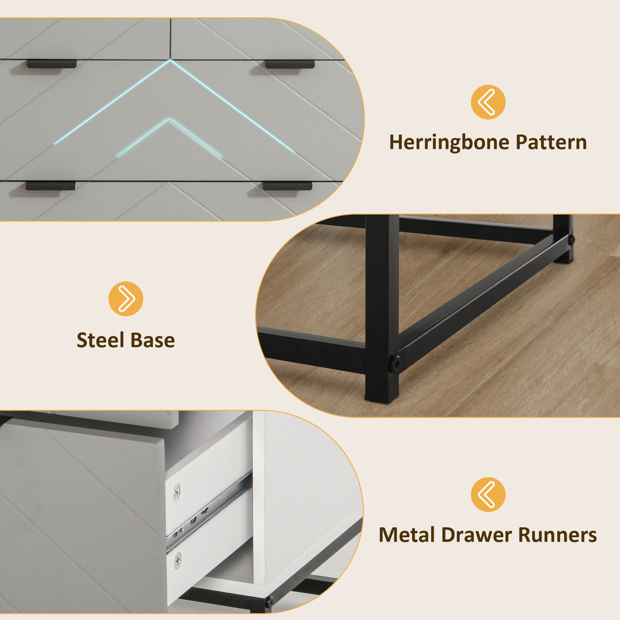 - Neutral grey and white colour with an embossed chevron pattern on the drawers for a unique stylish look