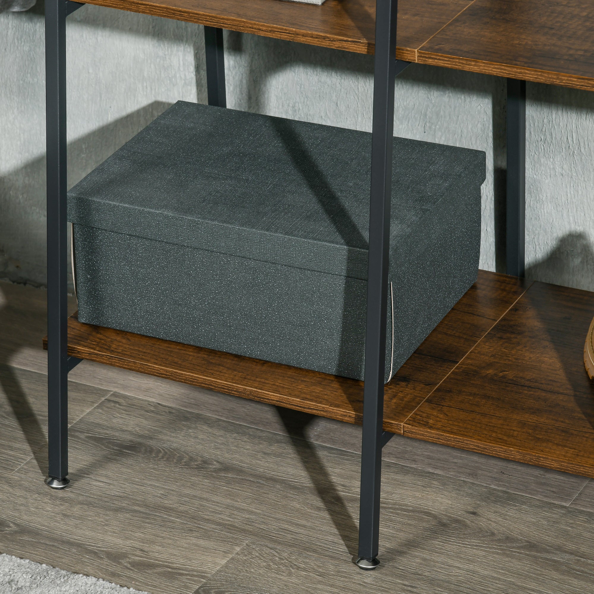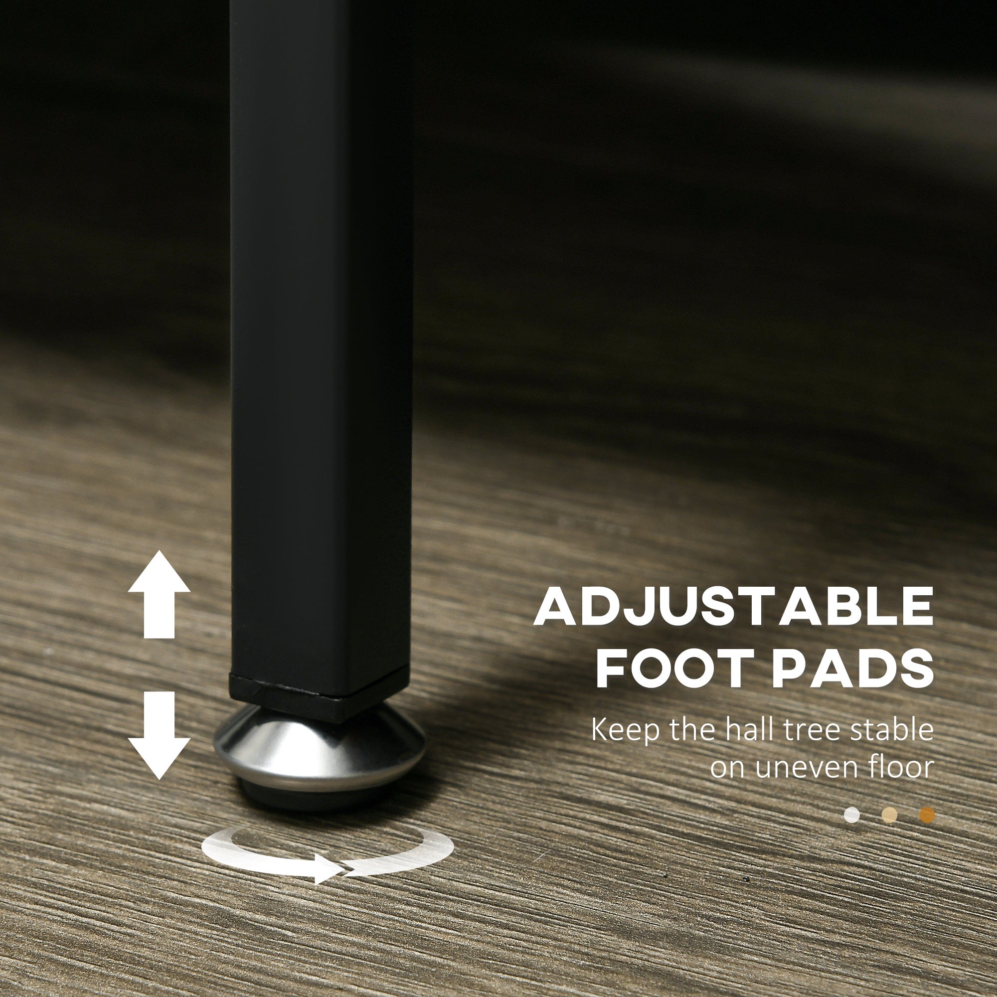 Keeping plenty together, all at once - this hall tree. Combining five hooks, five side shelves and two bottom shelves, there's plenty of room for your outerwear and accessories - great for family use. A steel frame means a strong, supportive structure, with six feet for balance. Coat stand is complete with anti-tipping straps to attach to a floor safely.