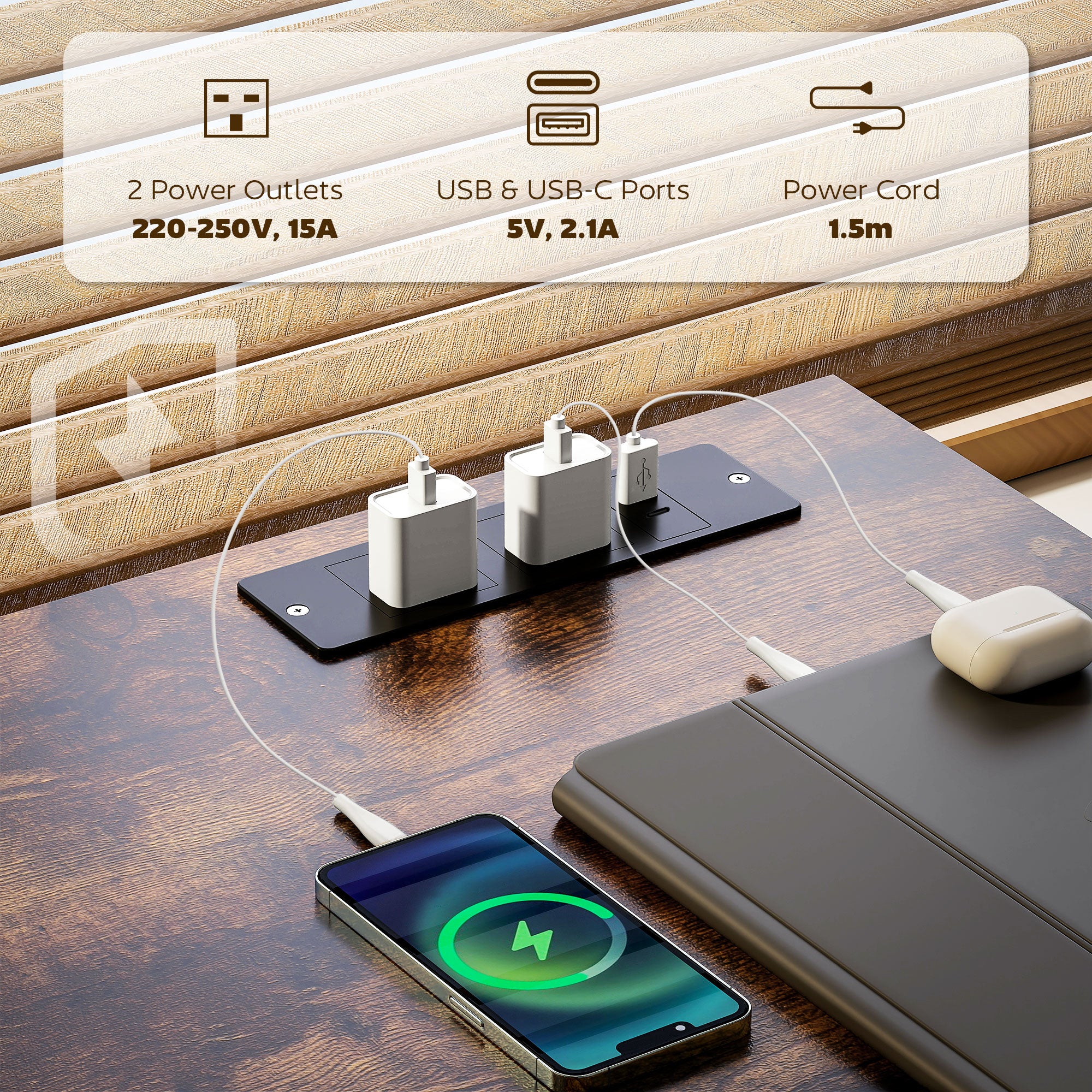 - Stay powered, stay productive: Keep your devices charged and ready with the built-in charging station on this computer table, featuring two power outlets, two USB ports and a 1.5 m power cord - no more hunting for available sockets.