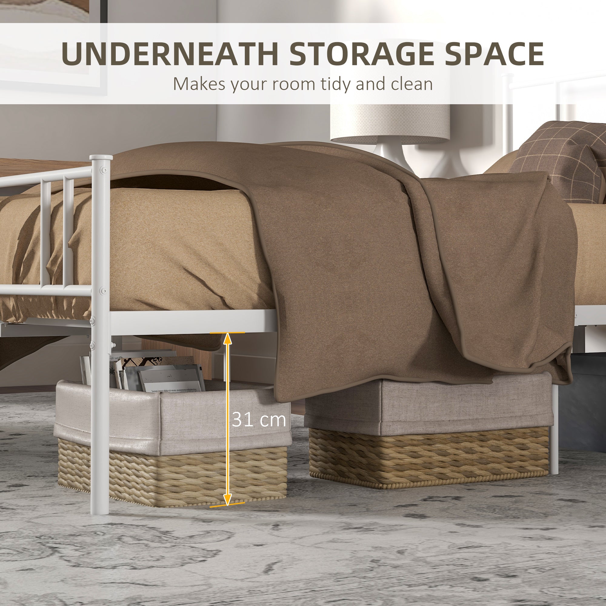 - 31cm under-bed clearance for hidden storage room