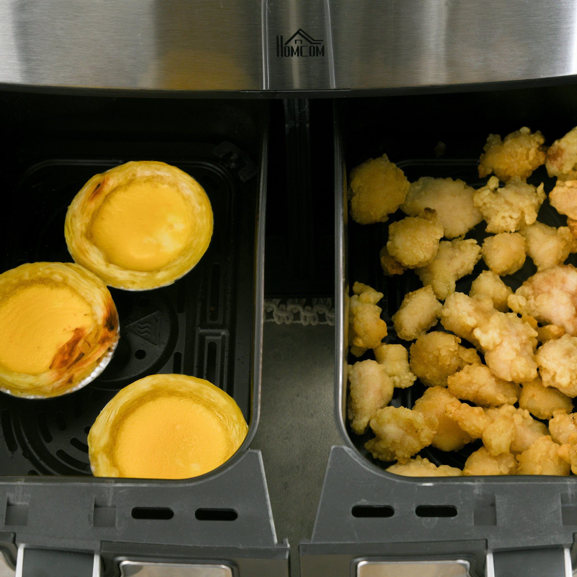 Want to enjoy crispy, flavourful dishes, quickly and healthily? Then look at this dual air fryer! Cooking quicker than a conventional oven, it is able to cook practically anything; the adjustable temperature (65-230°C) and a 60-minute timer also makes it super easy to use. The cool-touch handle and overheat protection makes it extra safe. With an 8 litre capacity, this compact air fryer can cook plenty - great for when you're hosting a small dinner party!