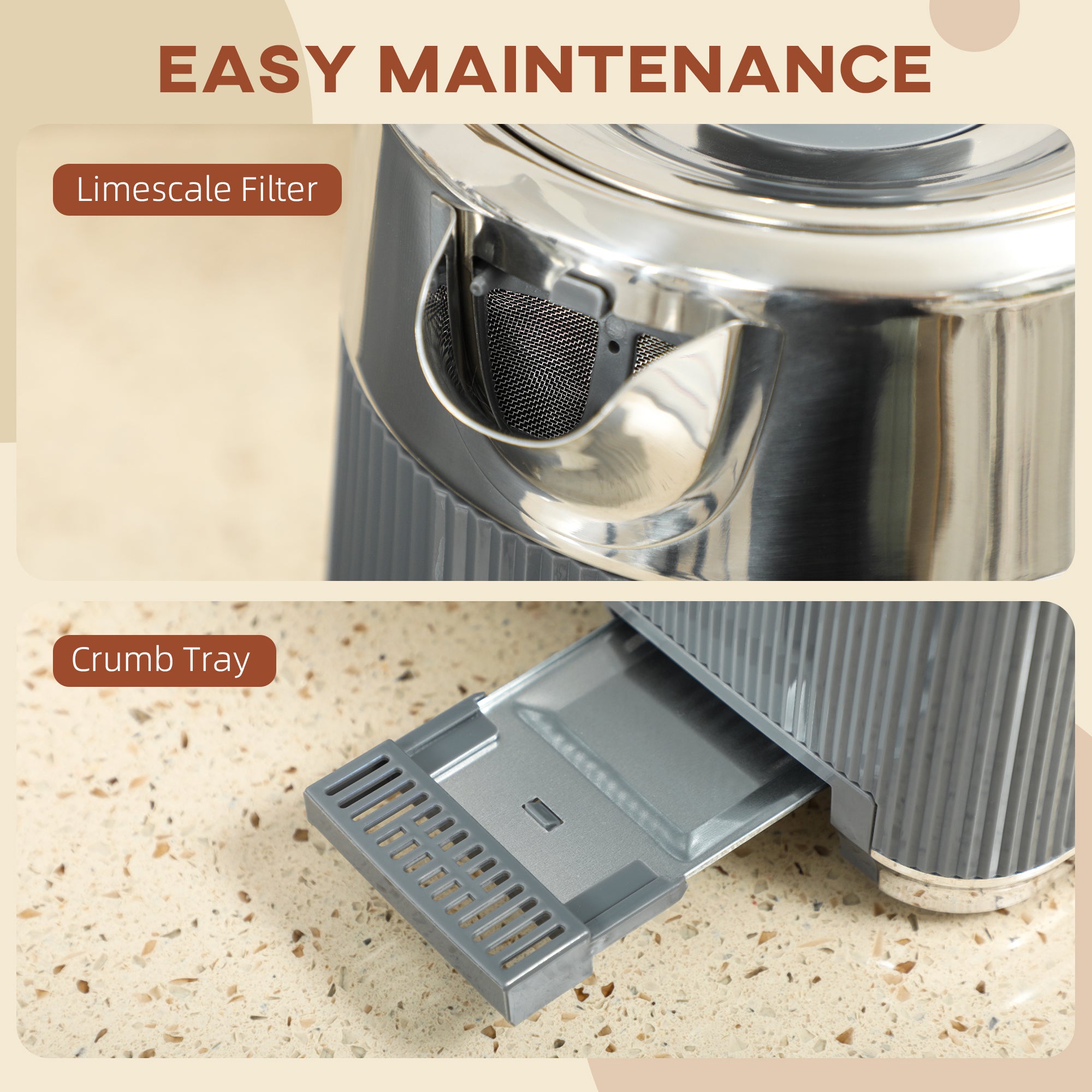 Start your mornings with the toaster and kettle set. Designed for busy families or home offices, the 1.7L kettle with UK Strix thermostat ensures rapid and accurate boiling with safety including auto shut-off, boil-dry and overheat protection, while the four-slot toaster offers independent controls and 7 shade settings for personalized perfection. From frozen bread to fresh slices, enjoy convenience. Elevate your breakfast routine with this stylish and unified kettle and toaster set.