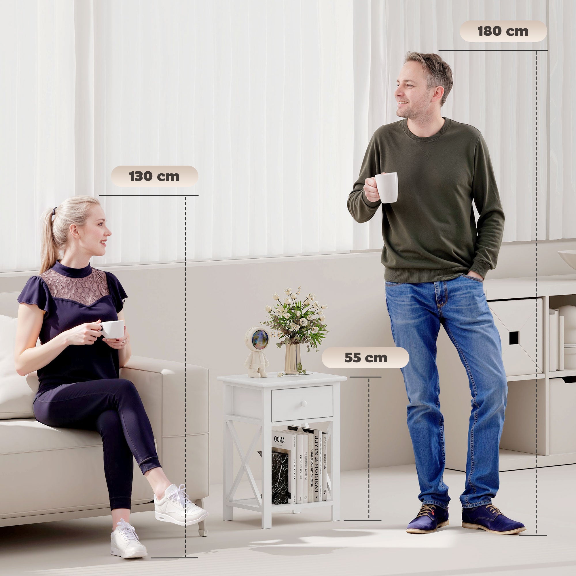 Bring simple beauty into your home with this side table from. Made from MDF for a sturdy structure, it is crafted into a simple, yet beautiful design, making it a welcome addition to any room. It features an open bottom shelf and a top drawer, giving you lots of storage space to keep the area neat and tidy. The frame is given extra strength with the side cross bars, helping to keep the shape unified. The perfect piece to enhance your home and beyond.