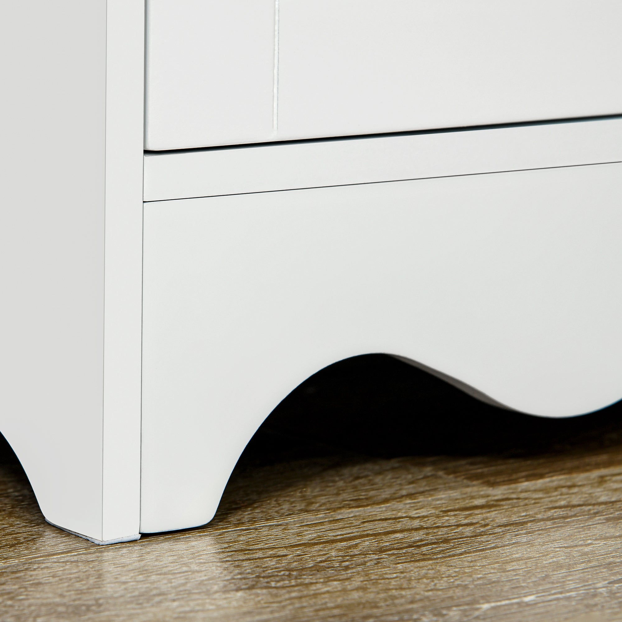 Kitchen running out of space? This tall storage cabinet will help tremendously. It comes with six tiers inside, divided into two sections - plenty of room for keeping all kitchen essentials stored. The white and wood-effect design is classic and versatile - it'll blend itself in beautifully with ease. Now you'll never an untidy kitchen and dining space again.