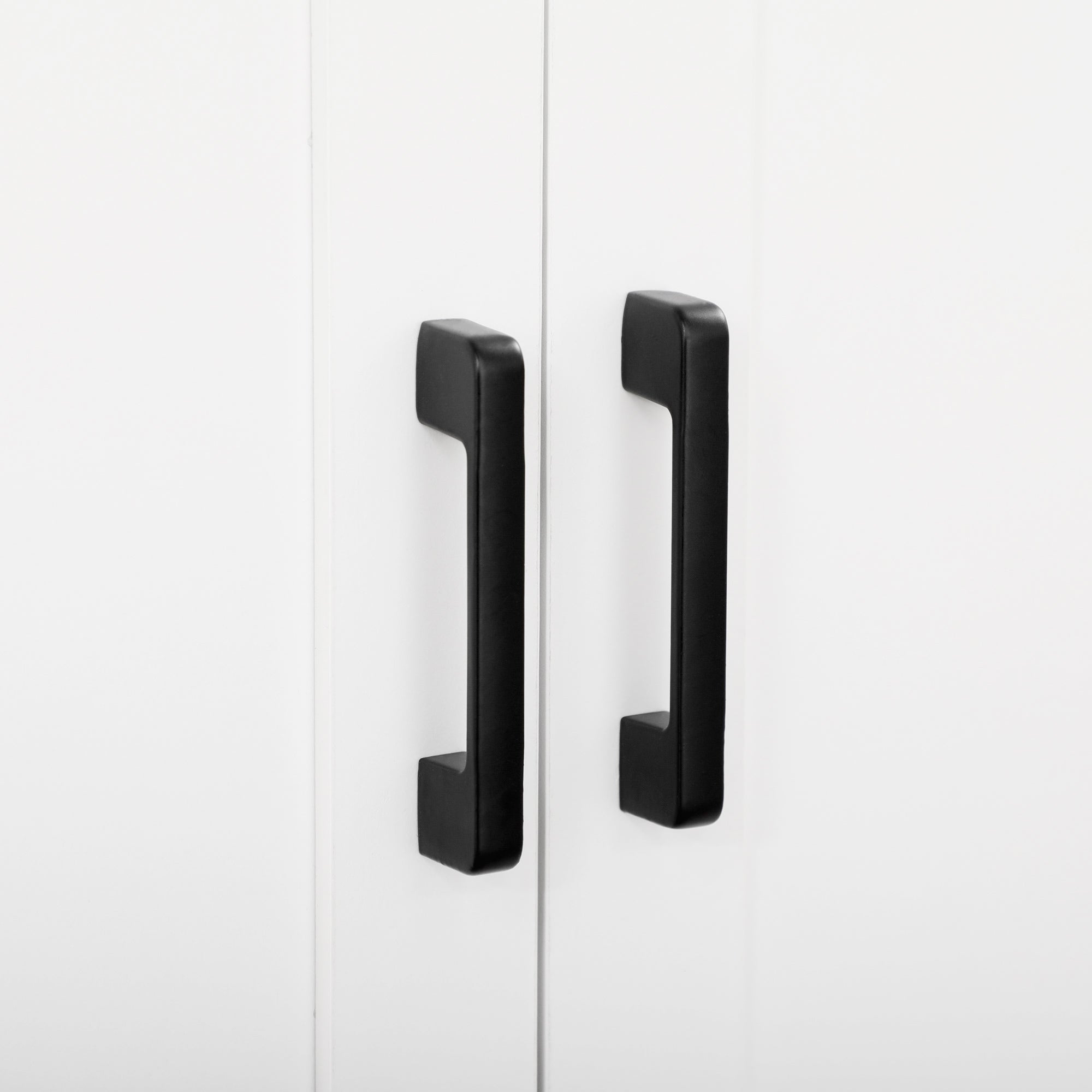 This tall storage cabinet is an easy and stylish way to keep your home tidy. Made from particle board for a sturdy structure, it's formed into a tall and narrow design, making it great for fitting into smaller spots. Inside there are five shelves for storage and organisation - adjustable to fit in differently-sized pieces. Four doors to access top and bottom sides easily. Complete with anti-tipping straps for safety.