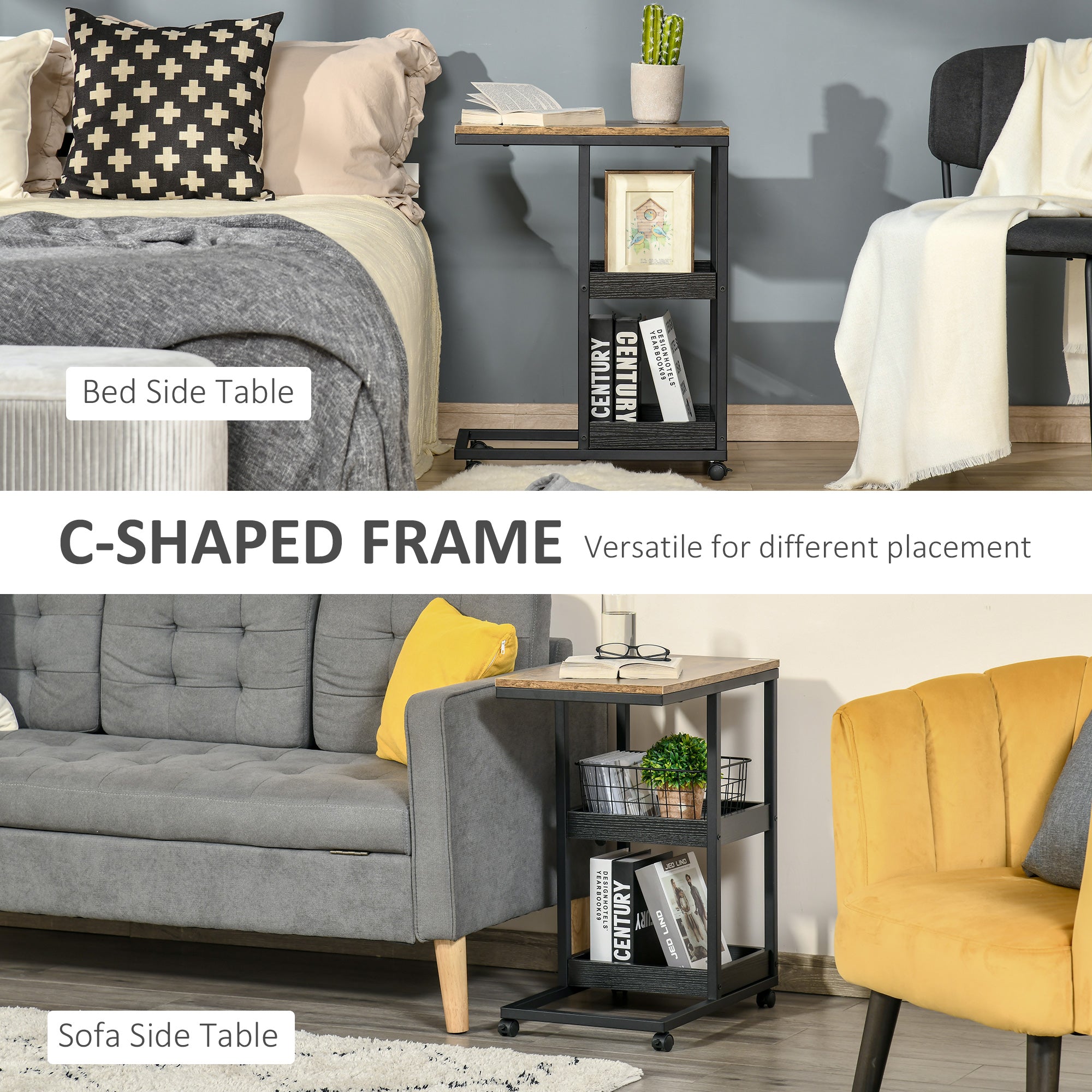 Bring industrial style into your home with this C-shaped table from. Its design allows you to slide the bottom under the sofa or armchair, bringing your laptop or lunch closer to you €“ perfect for saving space. With a long table top and two open shelves below, you can display your favourite pieces and use it as a workstation. A multiuse piece which is ideal for smaller rooms.