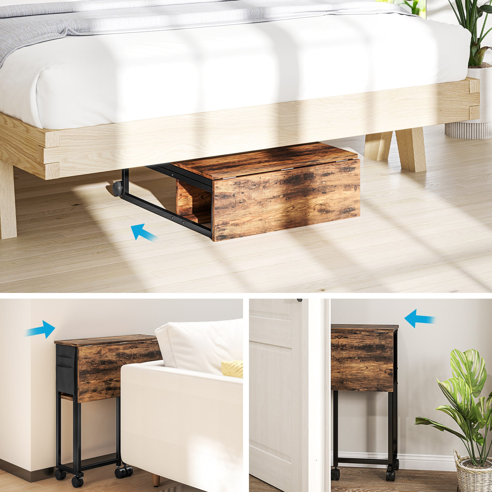 Drop leaf design: Transforms from 21 cm as a compact side table to 50 cm as a functional home office desk when you lift the side up. Great for small spaces, it doesn't take up room when not being used Lower shelf and side bag: Keep essentials within close reach when using this study table - easy access to essentials.