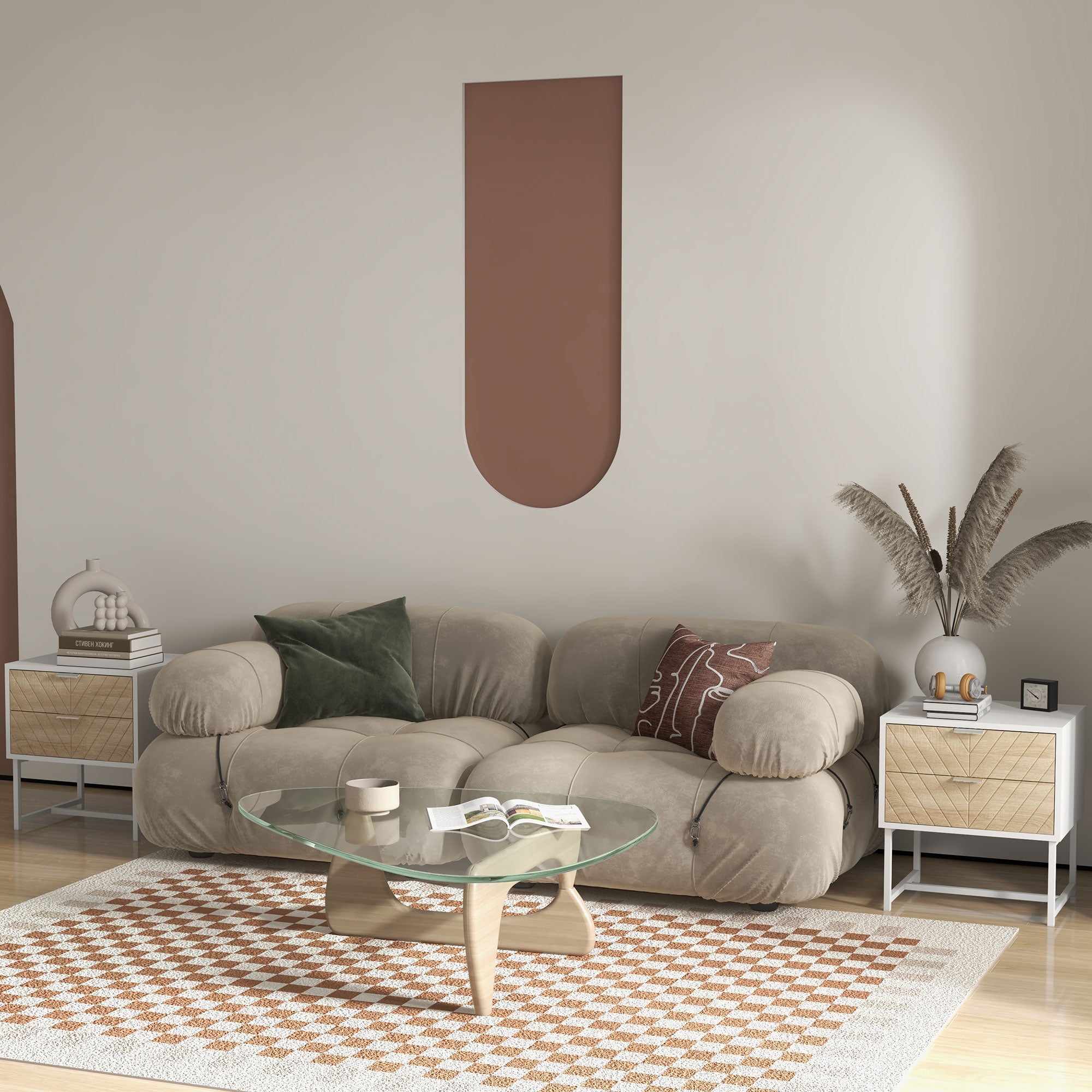 Keep essential items within arm's reach with this Accent Table. This beautiful piece stands perfectly next to your high bed or sofa couch. The bedroom Table features 2 drawers for storing remotes, coasters and other household items. Metal frame sits on the bottom, keeping the unit stable. Finished in two colours and Chevron stripe lines design, It's a perfect storage choice for all homes.