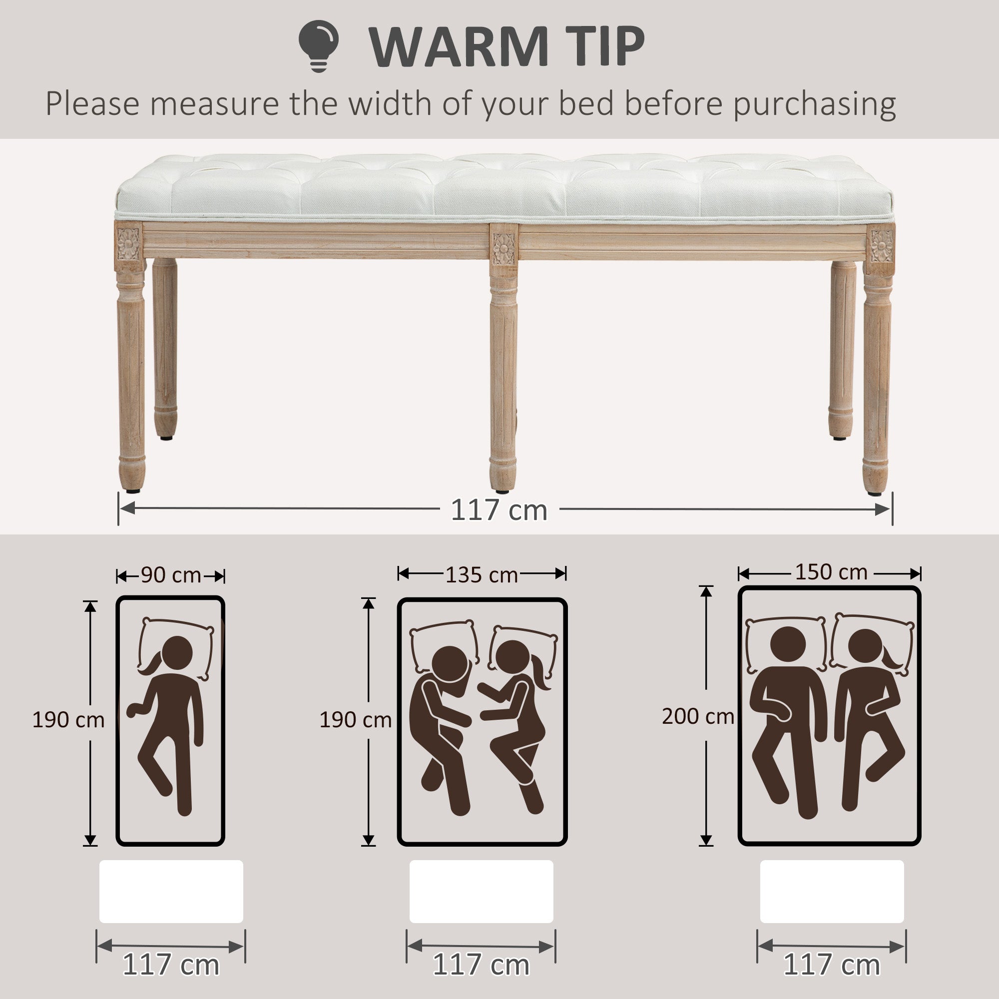 Cushioned seat: Thick padded top, with breathable linen-look upholstery - bed bench gives you a comfortable temporary seat whenever you French vintage style: A traditional-looking frame with carvings all over - wood is brushed. Window bench is elegant and brings a touch of beauty into the home Wooden frame: A strong core for the tufted bench, supports you when being used.