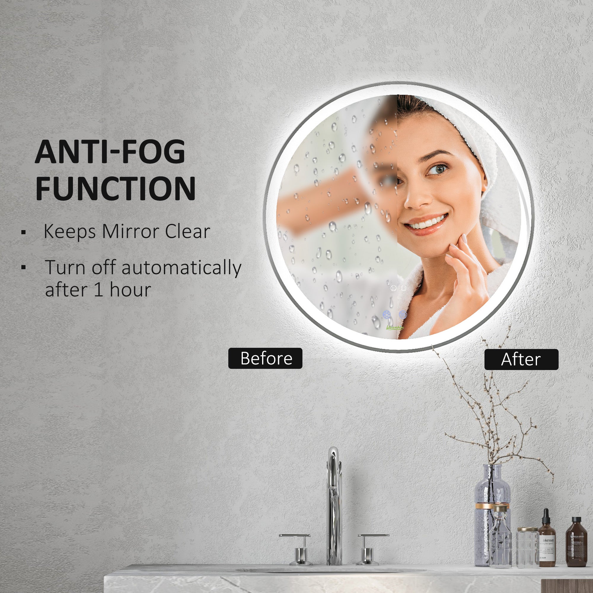 - Defog function makes it easy to see your reflection after showing