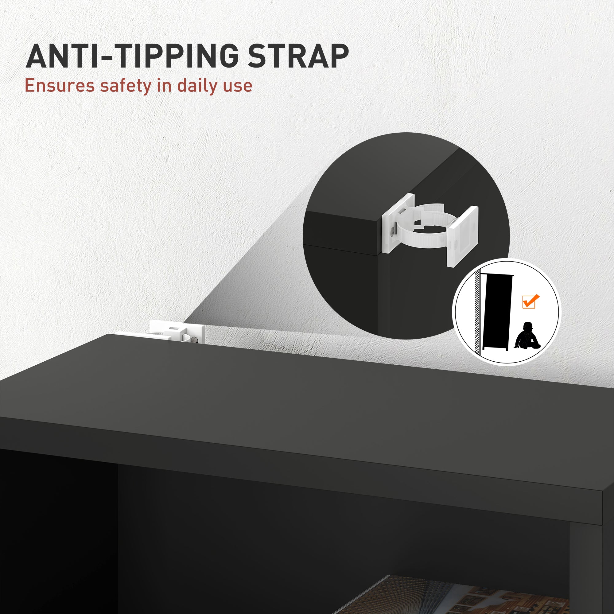 - Anti-tipping straps to fix to a wall