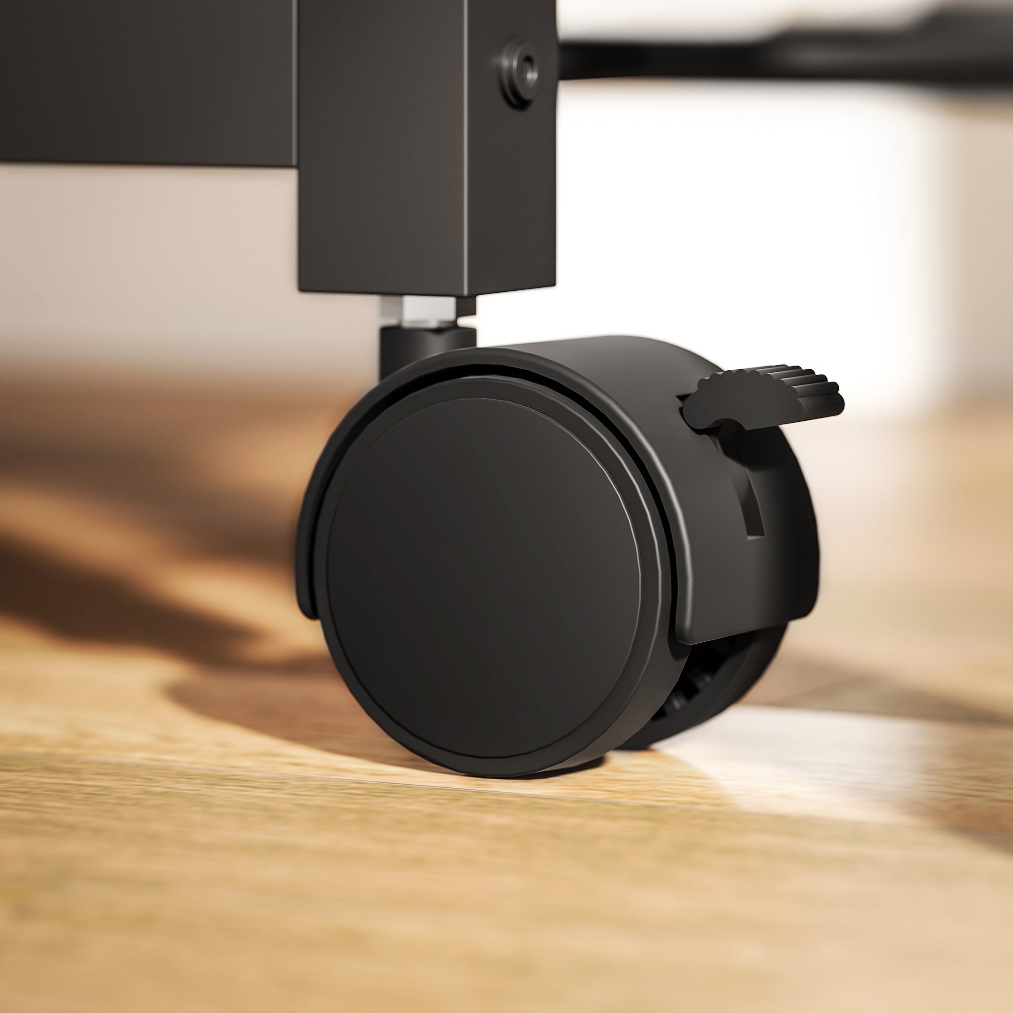 - Four swivel casters, two with brakes