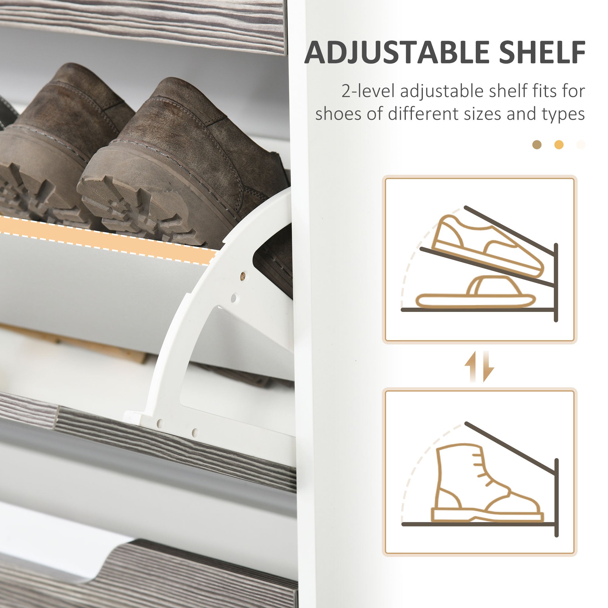 Give shoes and more somewhere stylish and protective to keep them - grab this narrow shoe cabinet from. There are two flip drawers, each can hold eight pairs - great for use with the family or your flatmates. The inner shelf can be set to two different positions for storage, which fits your shoes better. This tall shoe cabinet is made from a blend of MDF and particle board, so it's robust. Finished with a handy top drawer and glass shelf, offering even more storage and display space.