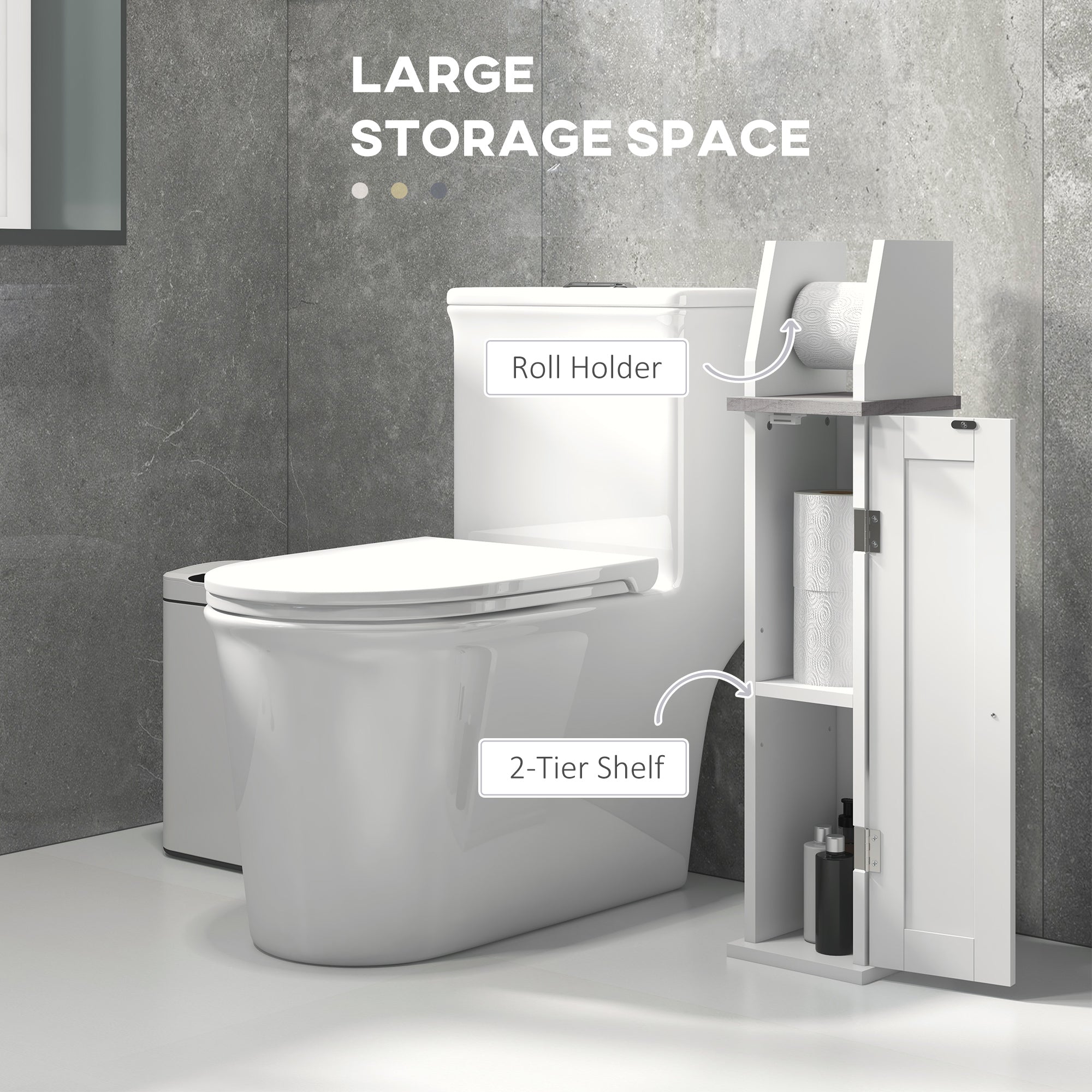 A essential for every bathroom, with added handiness. This bathroom cabinet combines a top toilet roll holder and bottom storage cabinet. Made from MDF, it is a durable piece suitable for everyday use, with a water-resistant paint coating for gentle protection. Inside the cupboard is an adjustable shelf to fit in differently-sized items. A simple and effective home storage piece.