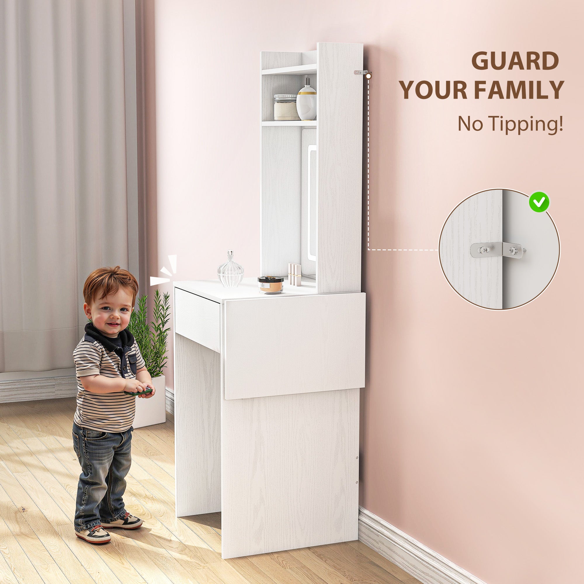 - Anti-tip kits add safety and keep the vanity stable in use