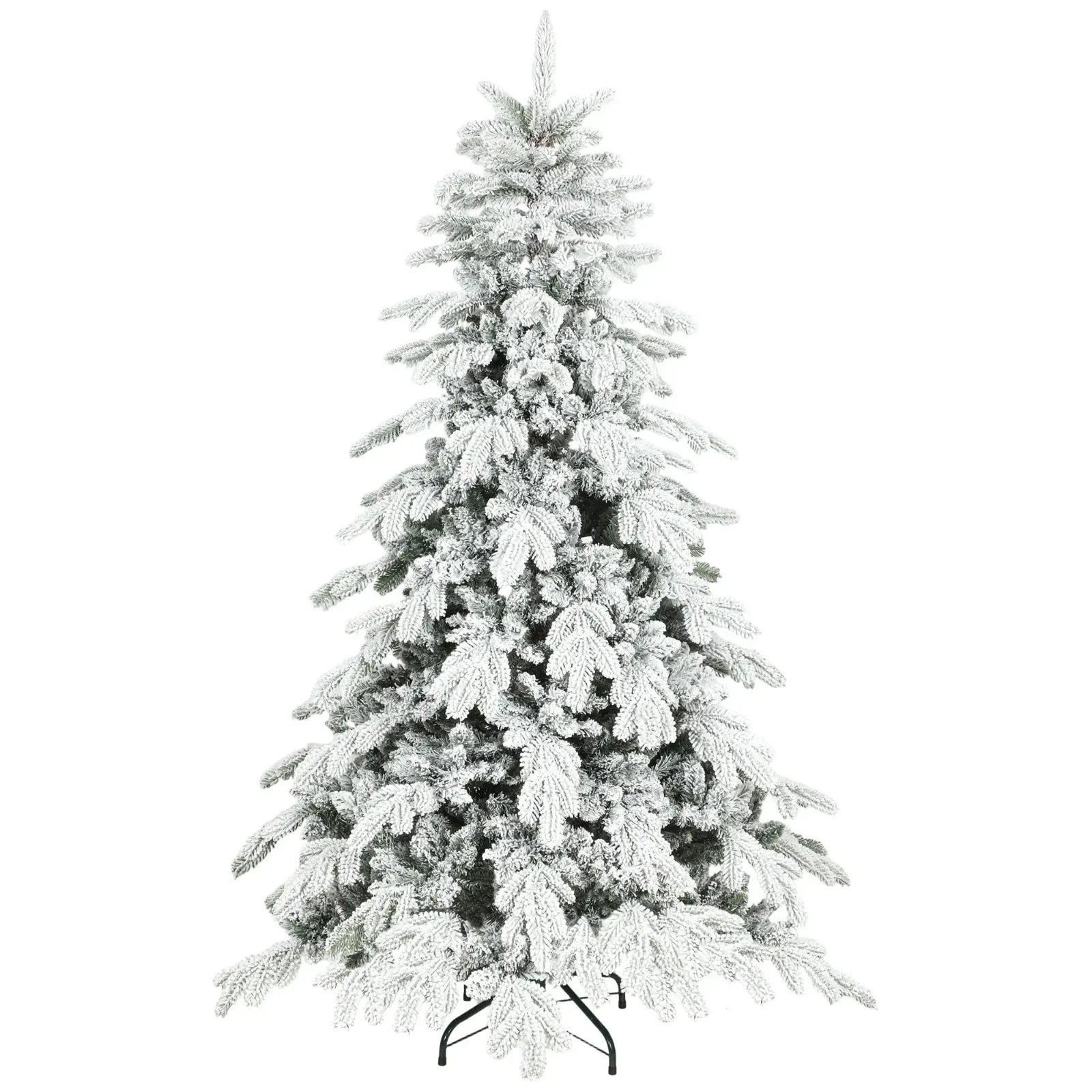 Snow Flocked Christmas Tree 6ft Realistic Tips Hinged Xmas Tree White and Green