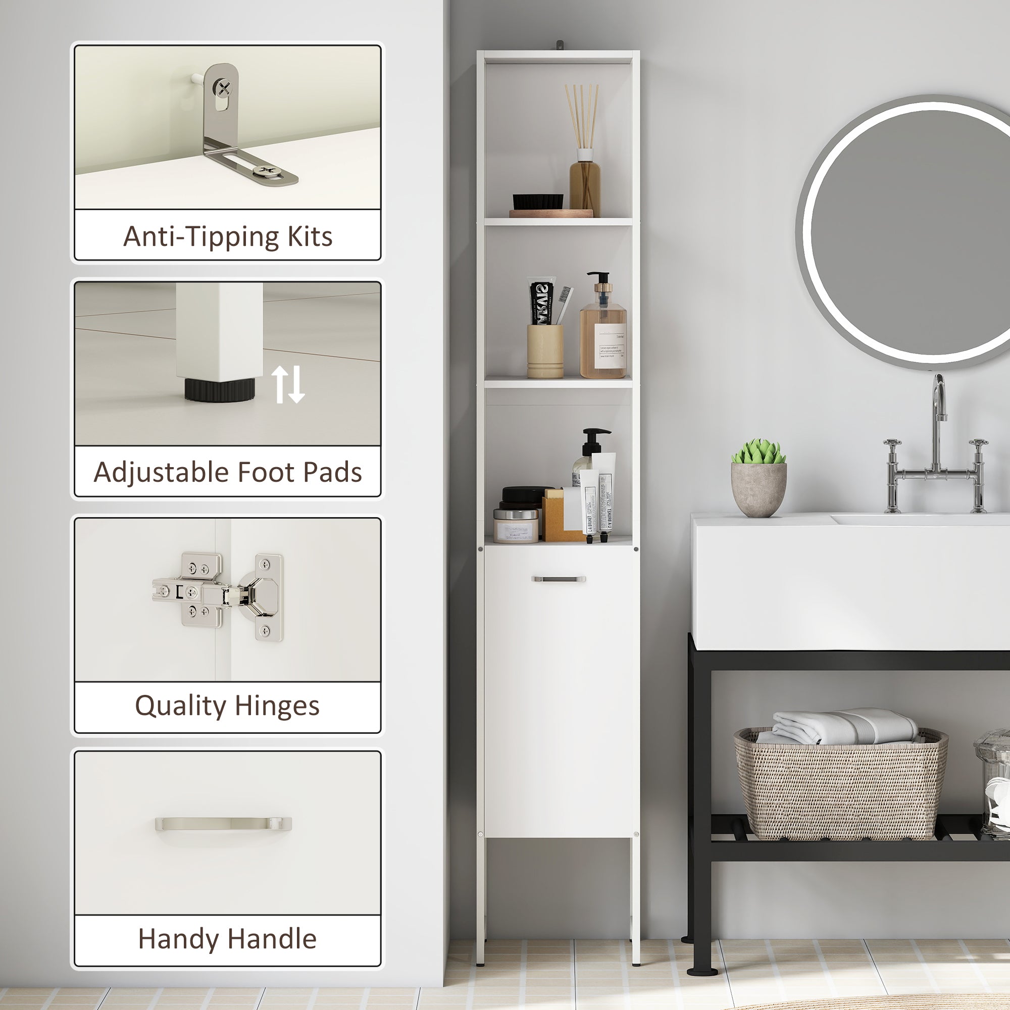 Maximise your bathroom's potential with the tall bathroom cabinet from. This slim bathroom storage unit offers a blend of three open shelves and two closed compartments, adapting to all your essentials with a five-level adjustable shelf. Its narrow, tall design efficiently utilises space, ensuring every inch of your bathroom shines with neatness and accessibility.