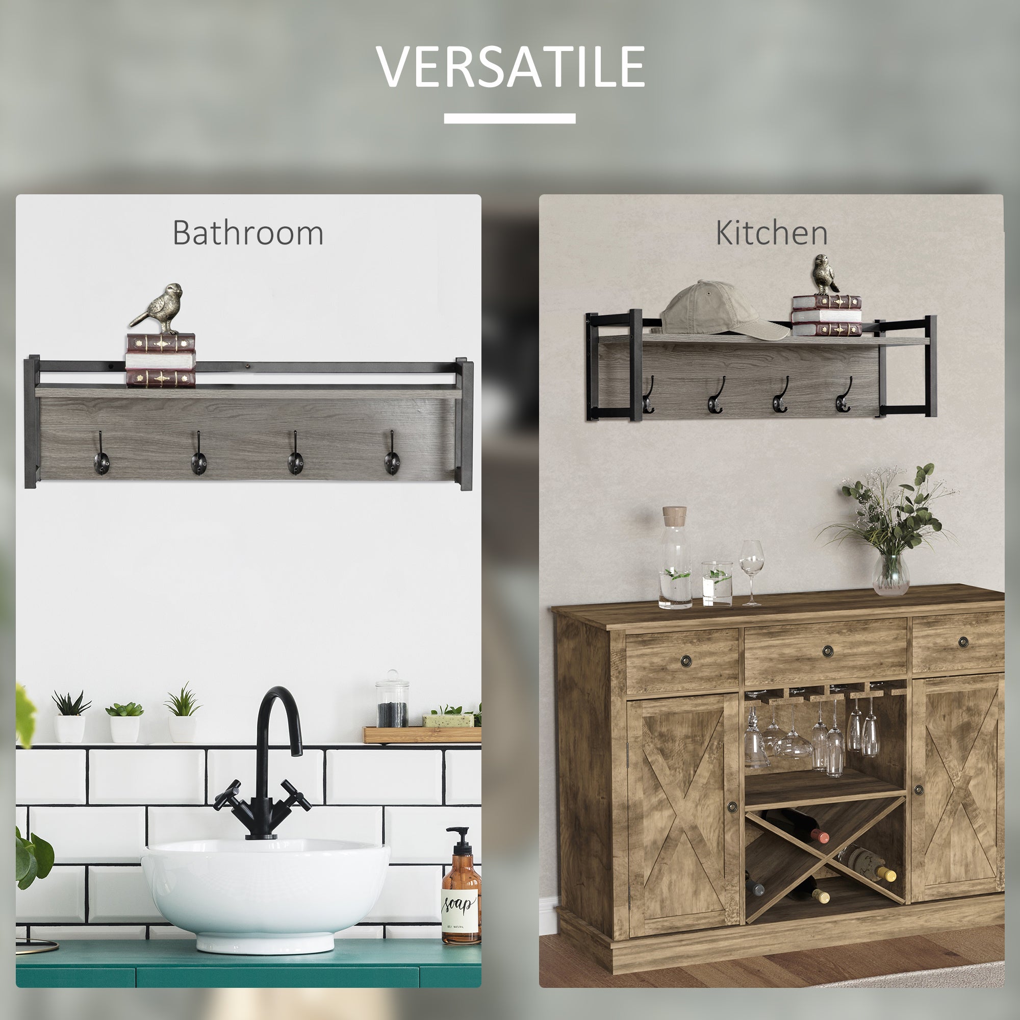 Easy, convenient storage for the hallway, the kitchen and beyond: say hello to this hanging rack from. A metal frame which is strong, it's easy to fix to the wall/surface you choose. Comes with four hooks to hang outerwear, garments, towels etc,, with a top shelf for extra holding room. Natural wood effect with a rustic edge, this piece will look great, no matter where you decide to fix it.
