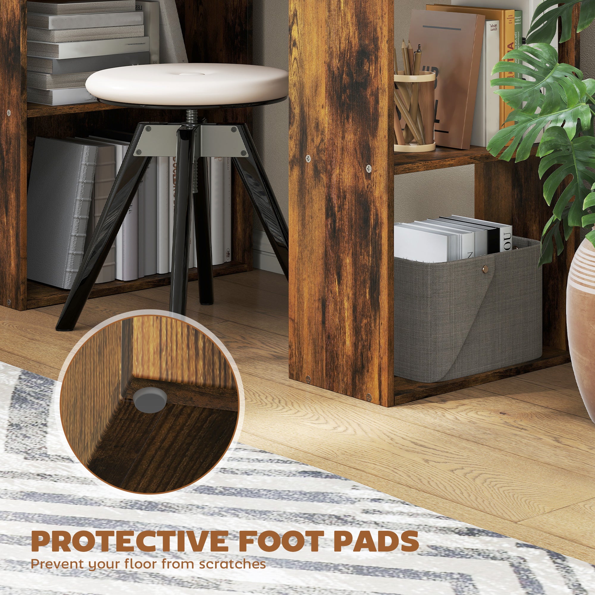 - Plenty of storage: This home office desk includes 4 cubby shelves on side and a 2-tier shelf on the other side for storing and displaying books, photos, or artwork.